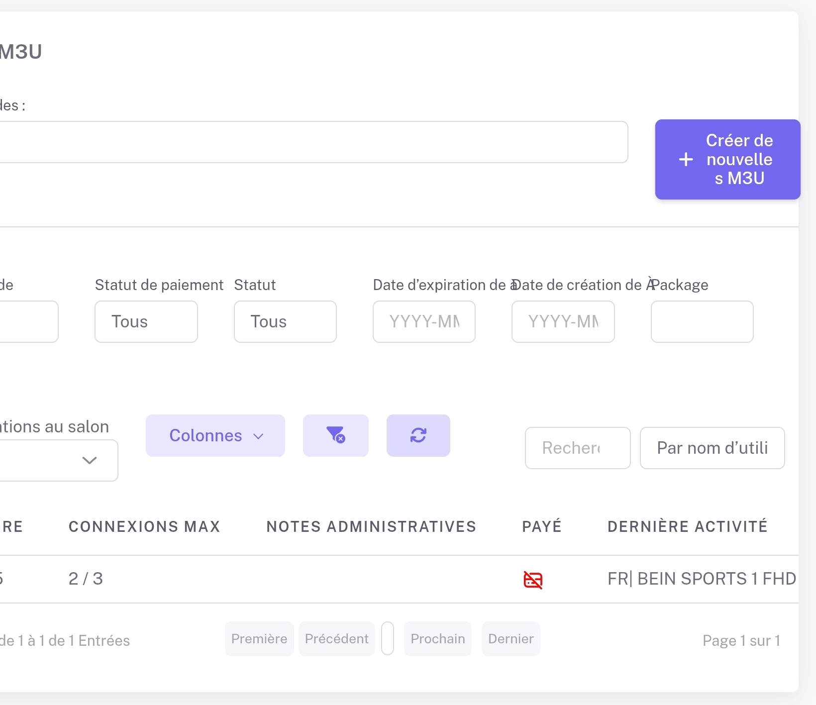 user982 1 Posted December 30, 2025 Author Posted December 30, 2025 8 hours ago, vincen said: C'est à dire ?? jamais entendu parler d'un truc pareil ! Dans le panneau de contrôle iptv (que j'obtiens en achetant des crédits), il est possible de créer des comptes clients (playlists m3u avec un nom d'utilisateuret un mot de passe) d'une durée déterminée. Chaque playlists ayant de 1 à 3 connexions simultanées. Le problème vient du fait que cette playlist crée peut se retrouver dans les résultats du programme de recherche des playlists m3u. 1