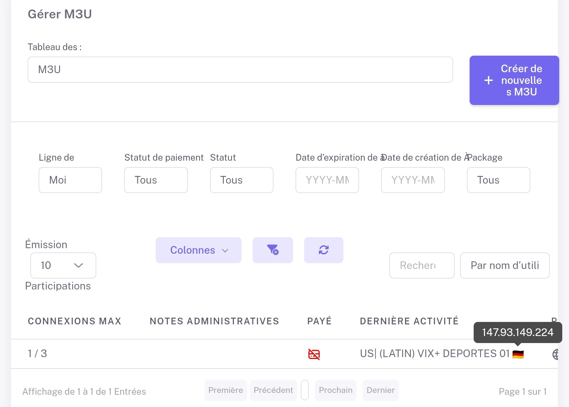 user982 1 Posted December 28, 2025 Author Posted December 28, 2025 1 hour ago, user982 said: Personne n'a mon code iptv excepté le fournisseur iptv. J'ai détecté l'adresse ip du pirate à partir du panneau de contrôle iptv (voir l'image) 1 hour ago, vincen said: Es-tu sur qu'il n'y avait pas un même compte utilisateur qui regardait 2 chaines différentes ? dans le dashboard j'ai remarqué que si tu as 2 connections avec un même compte depuis un même ip une seule des 2 sessions apparait ! J'ai 3 connexions iptv avec le même compte. C'est pour ça que tu vois 2/3 connexions, mais un seul compte. Le panneau de contrôle iptv n'affiche pas le deuxième utilisateur.