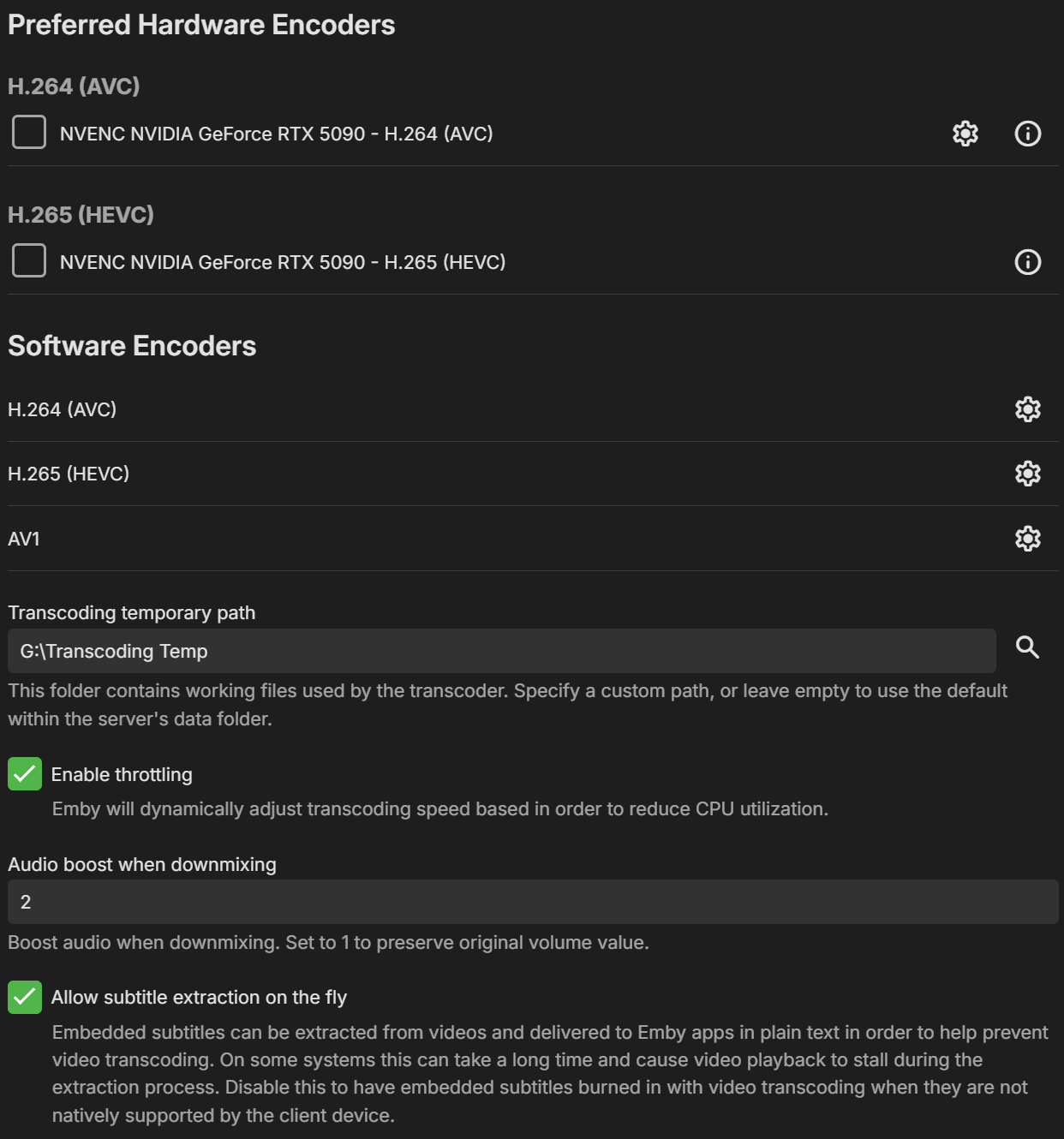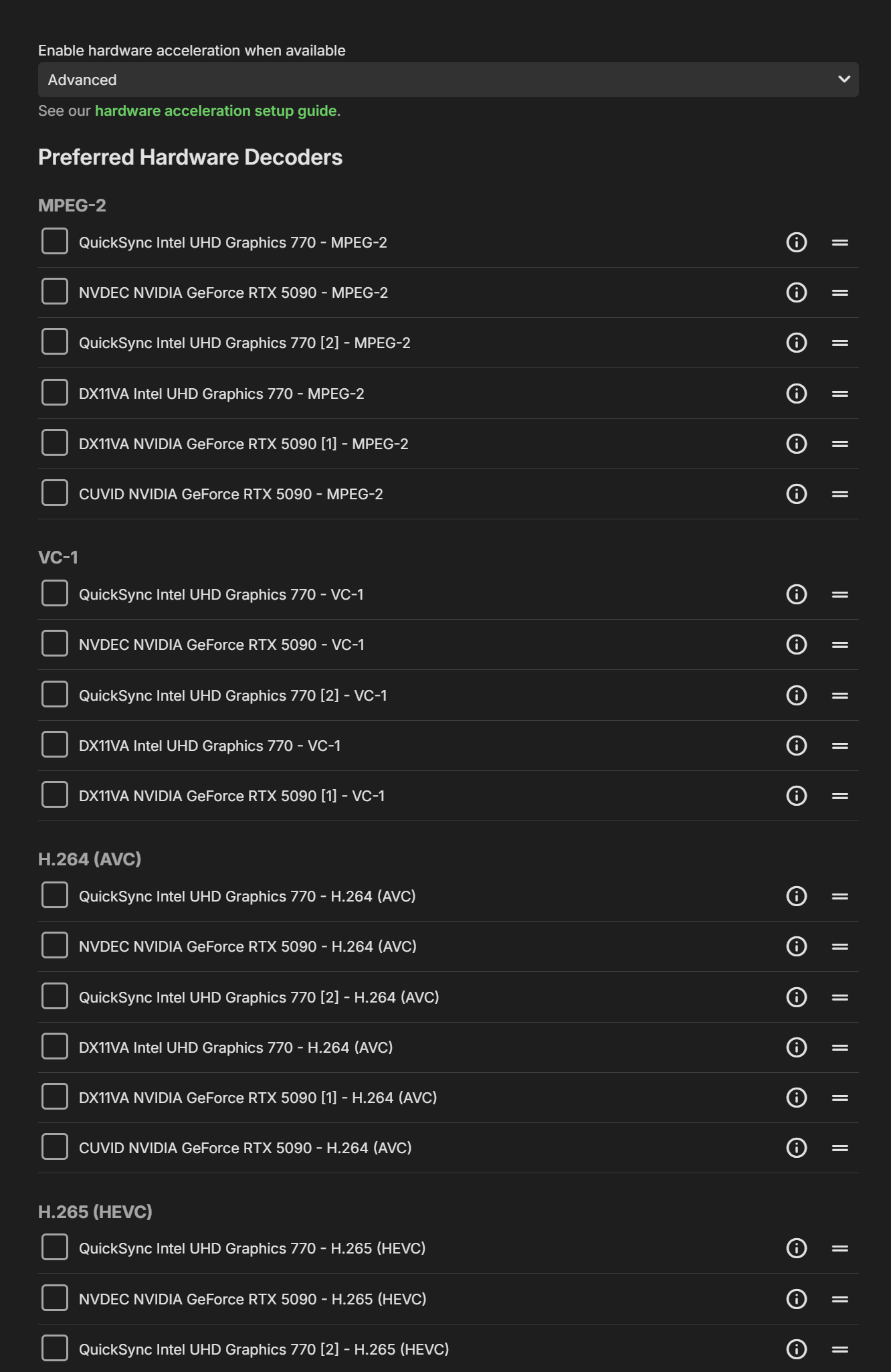 Lyfesaver 133 Posted January 4 Posted January 4 Server <-> Emby (Best Practices) So, I am just looking for advice on some best practices as my "Media Server" just got flipped upside-down and turbo-charged for other, non-media purposes. Gone is the 12th Gen i7 w/32GB 4800 DDR5 & Arc A380. Swapped out the CPU, GPU and RAM to a 14th Gen i9 w/96GB 6400 DDR5 & RTX 5090 (with a 2nd GPU, like a 5070 Ti, being added with a month or so). Why? My boss said if I provide the server (not knowing I had one and meeting his reqs would be a simple CPU swap for me) told me he would hook me up with the RAM (this was back in early OCT, thank god) and the 5090 so we could move our AI development off the cloud and only run the much cheaper production use on Azure. About 6k a month in Azure bills for AI and easily 4K was development, so it made sense as we are a small co. We use AI for real time fraud detection and SQL analytics so production usage will always be pretty cheap. Anyway, knowing what my hardware I am using is important, but I tell you all this so you wont think me an idiot that is spending all this on a "media server". I mean, don't get me wrong. I am 100% an idiot... just not in this particular scenario. Altho, I bet if we put in even minimal effort we can find ways I am an idiot here too, lol. Okay, on to the meat and potatoes. Since my step in the upgrade (about 2 weeks ago I finally dropped in the 14th Gen with the better IMC and was able to bump RAM from 5600 to 6400) I have noticed issues. Now some of them I dont think have anything to do Emby in any way what-so-ever and almost all of them are on the "more a nuisance" scale than an actual roadblock/showstopper. However, I do feel that if I was properly schooled in a few best practices Anything will be isolated enough that it wont matter to Emby. So, here are a few questions I have: Is it smart, in my use case, to force Emby to use the onboard UHD 770, freeing up all 5090 resources. Heck, is that even possible with on-board GPUs? I just checked and only the 5090 is listed under Advanced in transcoders Is there a particular way I should be doing the tone-mapping with multiple GPUs? Would it make sense to bring the Arc A380 back into the server and not use the on-board? My main fear (outside of the bugs I am trying to squash) is that when Vanna is doing it's thing and going to town hard, a transcode will kick in and for the next hour or so Vanna is slowed down. Now, in my defense of being stupid, maybe this is all for nothing and a transcode will have little to zero effect on the CUDA. I don't know. I am quite ignorant about thing when we get below the surface/end-use level of CPUs & GPUs. Anywho, sorry to drag this on for so long but any guidance on this will greatly help my confidence that at least I am moving in the right direction. I really dont want to have two servers