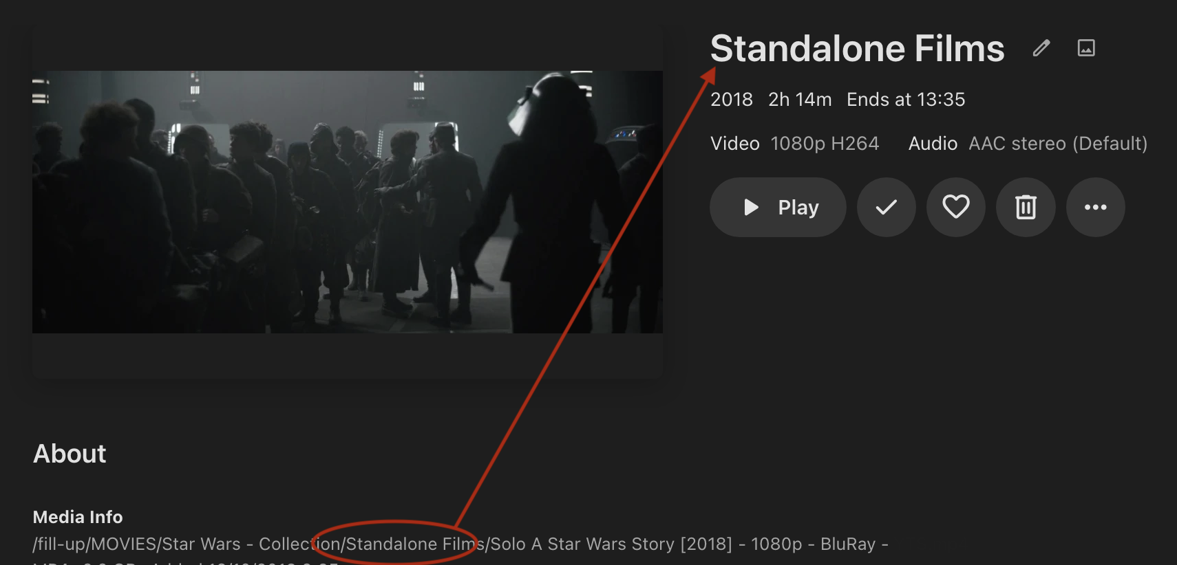 Happy2Play 9780 Posted January 7 Posted January 7 From a single item in folder standpoint folder name is used, if more than one item exits item names are used. But preferred method is every movie has its own folder.