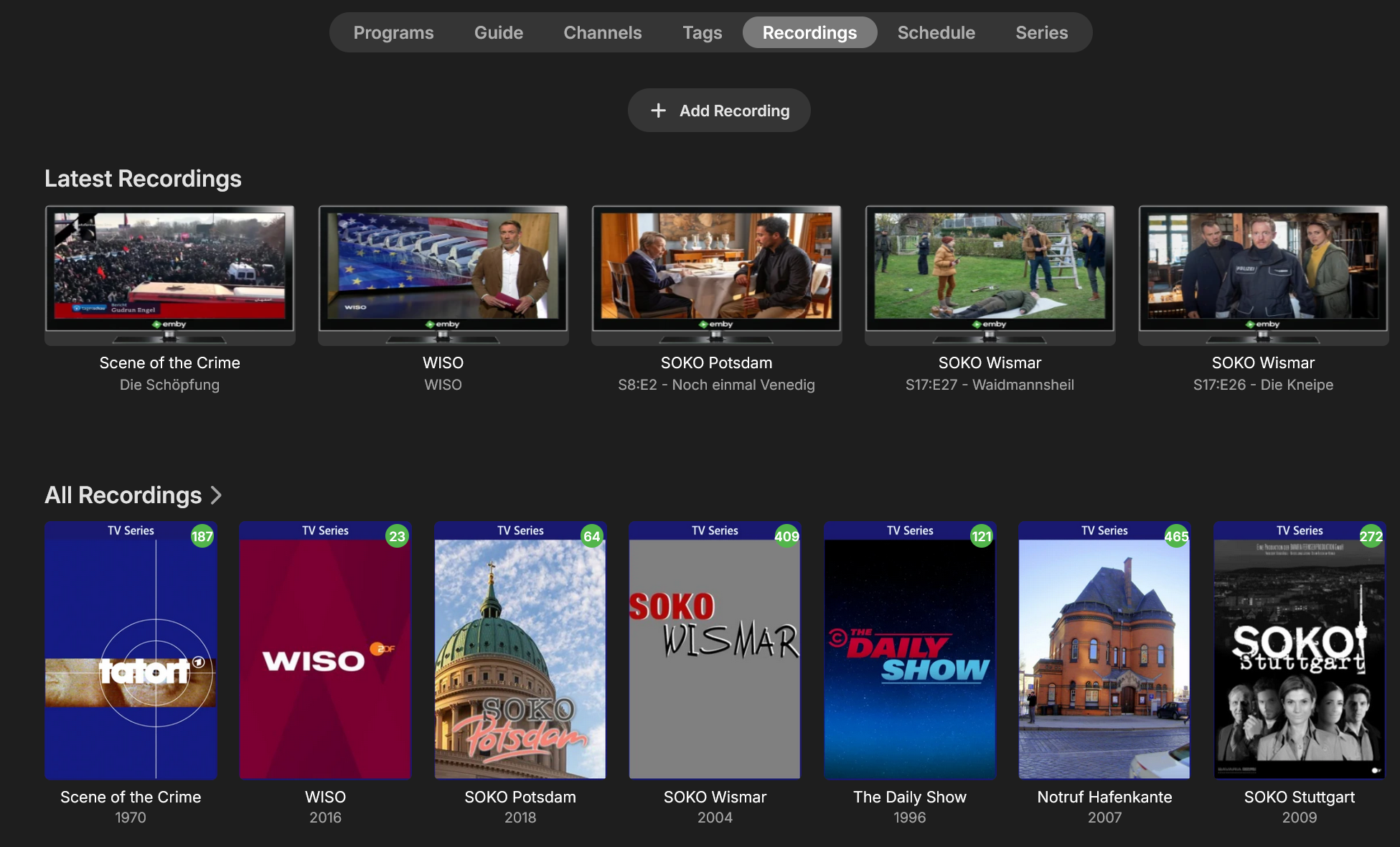 revengineer 142 Posted January 13 Author Posted January 13 I see the page shown below. This does show in individual latest episodes but without the details, such as duration which I need most to weed out and delete prematurely aborted, short recordings. 1
