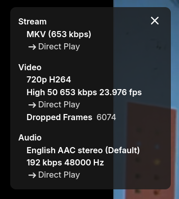 Solution brothom 177 Posted January 21 Solution Posted January 21 @Learning_Curveconsidering your screenshot shows Direct Play (no transcoding / remuxing is happening), it shouldn't be a timing issue if the server was transcoding. Normally these dropped frames come from network issues ór when the video has specs the player doesn't like (high bitrate, high resolution, etc). If you had this issue in Firefox, I wouldn't be suprised as Firefox has been iffy lately, CEOs moving out, development being backward and a whole host of ancient bugs re-appearing. I'd suggest sticking to a Chromium-engine browser for now, i.e. Edge, Google Chrome, Chromium, Brave, etc. Personally I like Brave because it comes with an integrated TOR Incognito feature, which is nice.