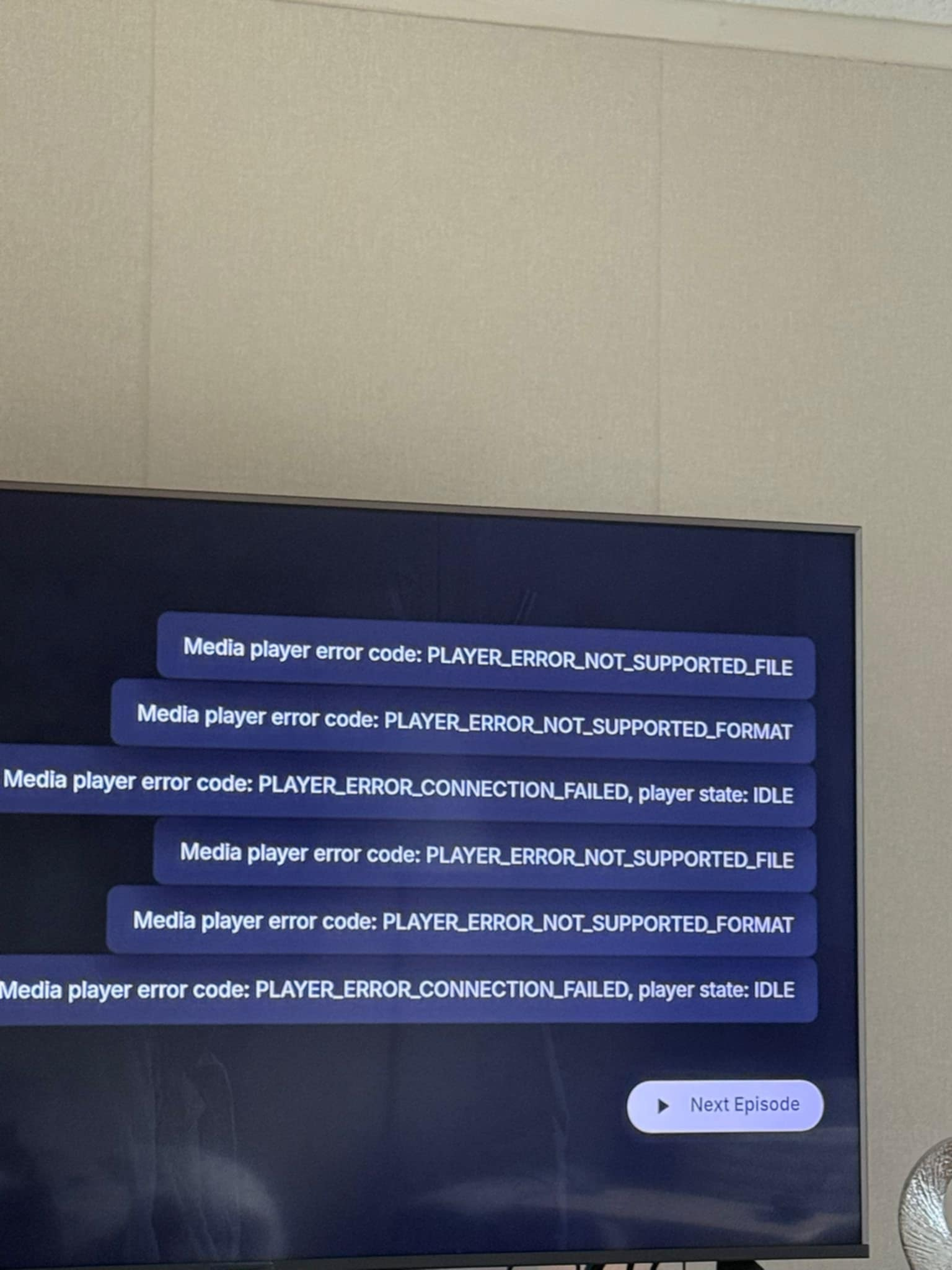 suttyd0lt 2 Posted January 22 Posted January 22 After some help, two family members on Samsung Tizen TVs (various models, one being a UE65NU8009 on Tizen 4.0) have reported playback failing. App works fine for browsing, but when they hit play they get a playback error straight away. Looking at the server logs, everything appears correct from Emby's side - PlaybackInfo returns 200, but then the app immediately calls ActiveEncodings/Delete. Server never receives a request for any video segments. The whole sequence takes less than a second 2026-01-22 12:41:52.500 Info SessionsService: POST http://host1/emby/Sessions/Capabilities/Full?X-Emby-Client=Emby for Samsung&X-Emby-Device-Name=Samsung Smart TV (UE65NU8009)&X-Emby-Device-Id=0ce457dc-1d2e-4eba-a713-079266017c00&X-Emby-Client-Version=2.2.5 2026-01-22 12:41:52.501 Info SessionsService: http/1.1 Response 204 2026-01-22 12:41:55.737 Info MediaInfoService: POST http://host1/emby/Items/80551/PlaybackInfo?UserId=xxx&StartTimeTicks=0&IsPlayback=false&AutoOpenLiveStream=false&MaxStreamingBitrate=30000000&X-Emby-Client=Emby for Samsung 2026-01-22 12:41:55.740 Info MediaInfoService: http/1.1 Response 200 2026-01-22 12:41:57.853 Info MediaInfoService: POST http://host1/emby/Items/80551/PlaybackInfo?UserId=xxx&StartTimeTicks=0&IsPlayback=true&AutoOpenLiveStream=true&AudioStreamIndex=1&SubtitleStreamIndex=-1&MediaSourceId=mediasource_80551&MaxStreamingBitrate=30000000 2026-01-22 12:41:57.857 Info SessionManager: Adding playSession 95195596fc4d40d8b362fae0c345aef3 2026-01-22 12:41:57.857 Info MediaInfoService: http/1.1 Response 200 2026-01-22 12:41:59.242 Info MediaInfoService: POST http://host1/emby/Items/80551/PlaybackInfo?UserId=xxx&StartTimeTicks=0&IsPlayback=true&AutoOpenLiveStream=true&AudioStreamIndex=1&SubtitleStreamIndex=-1&EnableDirectPlay=false&EnableDirectStream=false&AllowVideoStreamCopy=false&MediaSourceId=mediasource_80551 2026-01-22 12:41:59.252 Info MediaInfoService: http/1.1 Response 200 2026-01-22 12:41:59.297 Info HlsSegmentService: POST http://host1/emby/Videos/ActiveEncodings/Delete?deviceId=0ce457dc-1d2e-4eba-a713-079266017c00&PlaySessionId=95195596fc4d40d8b362fae0c345aef3 2026-01-22 12:41:59.298 Info HlsSegmentService: http/1.1 Response 204 2026-01-22 12:41:59.515 Info MediaInfoService: POST http://host1/emby/Items/80551/PlaybackInfo?UserId=xxx&StartTimeTicks=0&IsPlayback=true&AutoOpenLiveStream=true&AudioStreamIndex=1&SubtitleStreamIndex=-1&EnableDirectPlay=false&EnableDirectStream=false&AllowVideoStreamCopy=false&AllowAudioStreamCopy=false 2026-01-22 12:41:59.523 Info MediaInfoService: http/1.1 Response 200 2026-01-22 12:41:59.569 Info HlsSegmentService: POST http://host1/emby/Videos/ActiveEncodings/Delete?deviceId=0ce457dc-1d2e-4eba-a713-079266017c00&PlaySessionId=af5b28aa53034b1cbf6eaa9fc5653ce4 2026-01-22 12:41:59.570 Info HlsSegmentService: http/1.1 Response 204 2026-01-22 12:42:00.195 Info PlaystateService: POST http://host1/emby/Sessions/Playing/Stopped 2026-01-22 12:42:00.196 Info SessionManager: Playback stopped reported by app Emby for Samsung 2.2.5 playing Tom and Jerry - S1950, Ep18 - The Duck Doctor. Position: 0 ms You can see the app tries progressively more restrictive playback options (disabling direct play, then direct stream, then video copy, then audio copy) but aborts each attempt almost immediately without ever requesting a segment. What's odd is this was working fine, then stopped for one user around the 16th Jan, another on the 20th. No server-side changes on my end between those dates. Running Emby 4.9.3.0 behind nginx reverse proxy, users are on app version 2.2.5. I've tried a few things already - different SSL certs (ZeroSSL and Let's Encrypt), adjusting TLS ciphers and protocols on the reverse proxy, users have power cycled TVs and reinstalled the app. No joy. All other devices are playing fine, only these two samsung tv's appear to be having the problem.