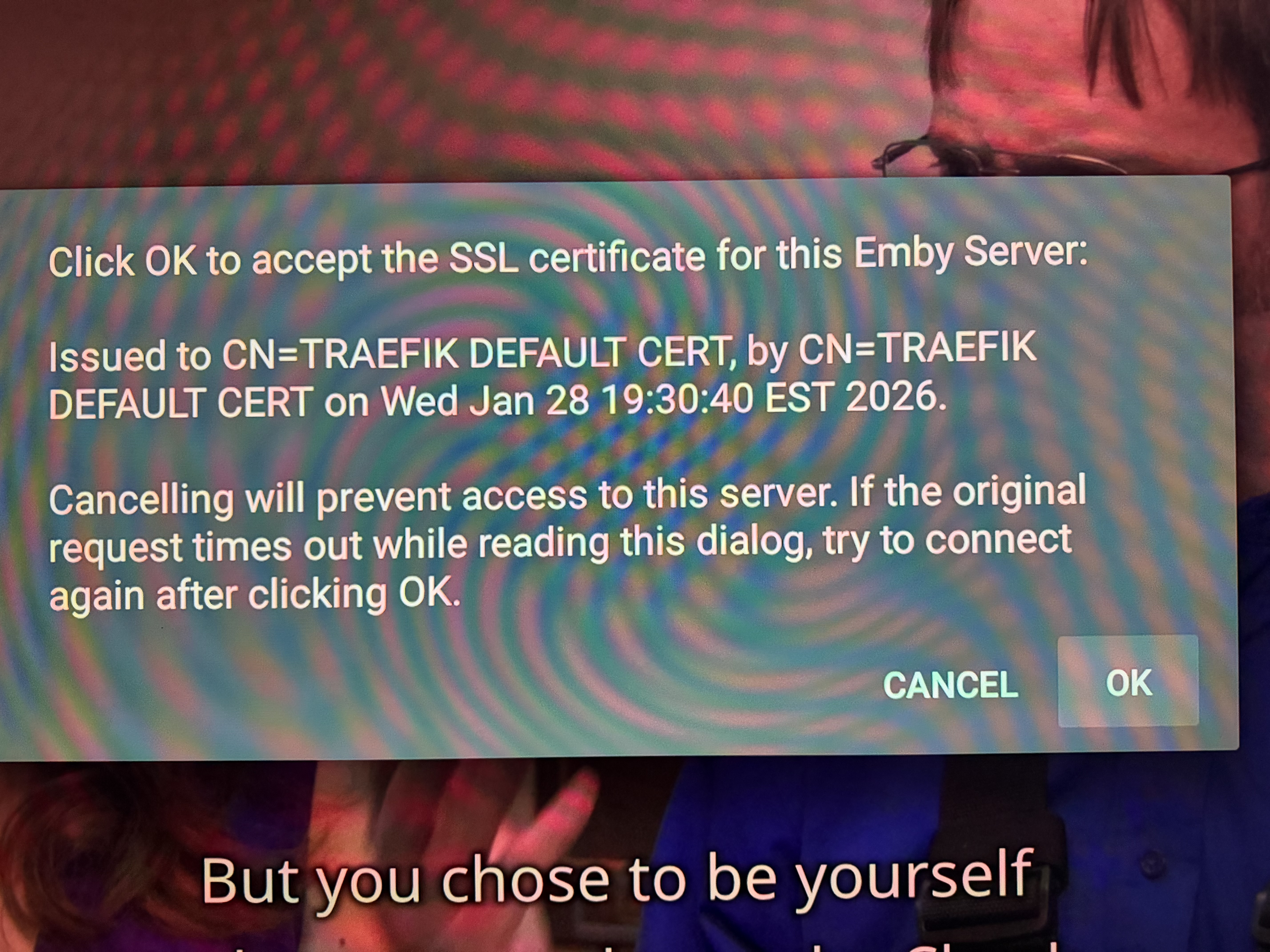 Luke 42077 Posted February 13 Posted February 13 OK we are looking into your issue with Emby for macOS. Quote Hmm also...I had forgot...I was also getting a popup on my Shield TV last night that kept asking me to accept a token from Emby (or something along those lines). This is normal. It should only happen once. You have to approve your server's SSL certificate if your iOS device doesn't trust it by default. 1