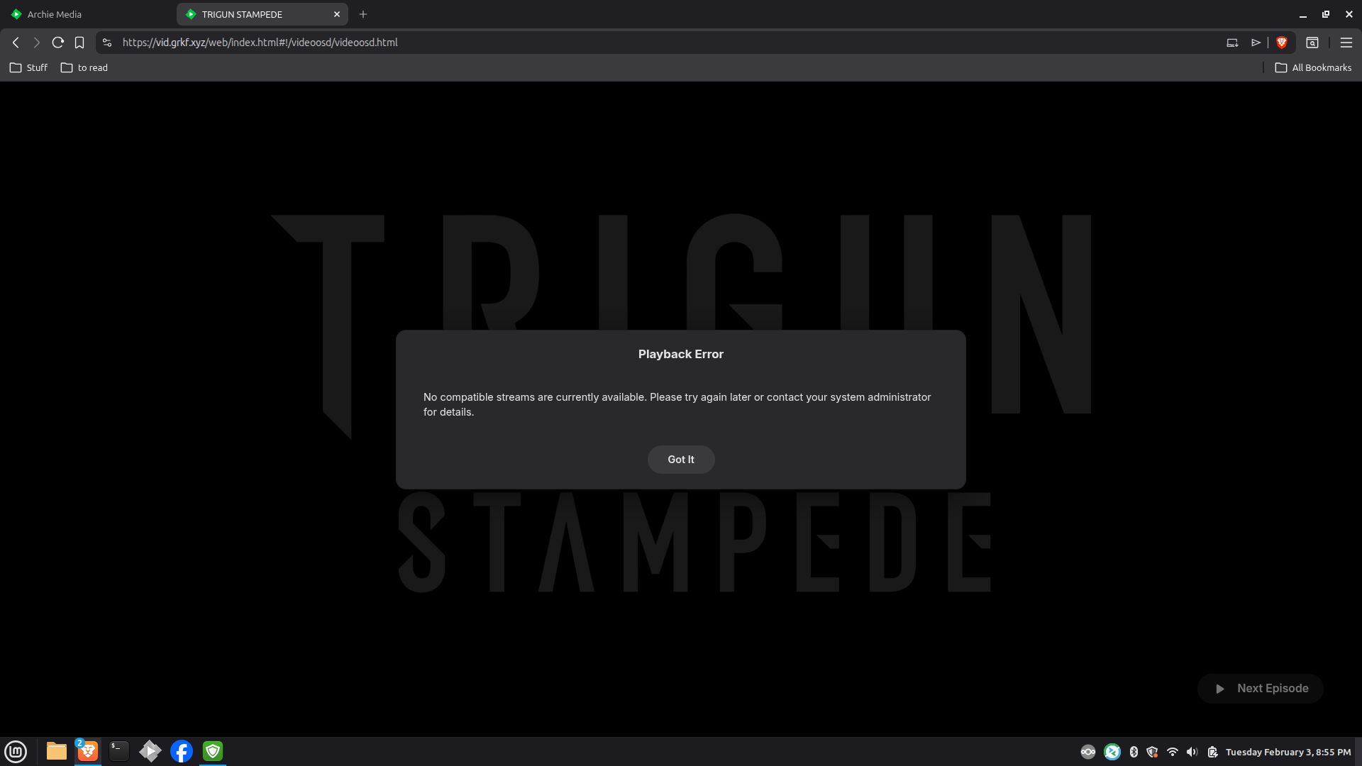 I did post my configuration info on the docker page in case I had made an obvious mistake. I reattempted to watch an episode of Trigun Stampede in a web browser with subtitle extraction disabled and here are the log files. it created three transcode logs from the attempt. Web browser and Linux beta was attempted from a local network, google tv and the windows client from outside the network. It seems that whenever transcoding is required the subtitles do not get added to the transcode even if set to.