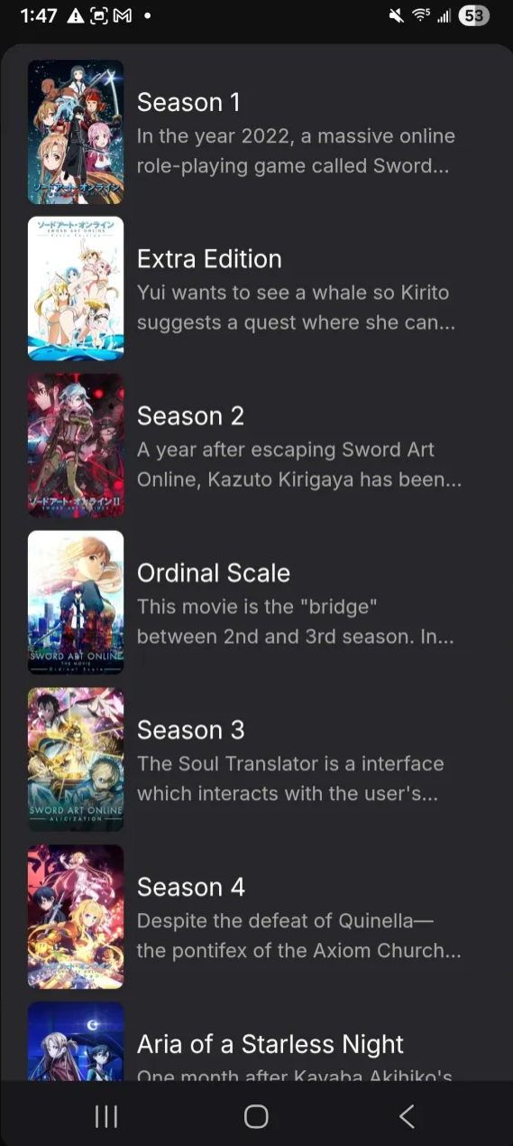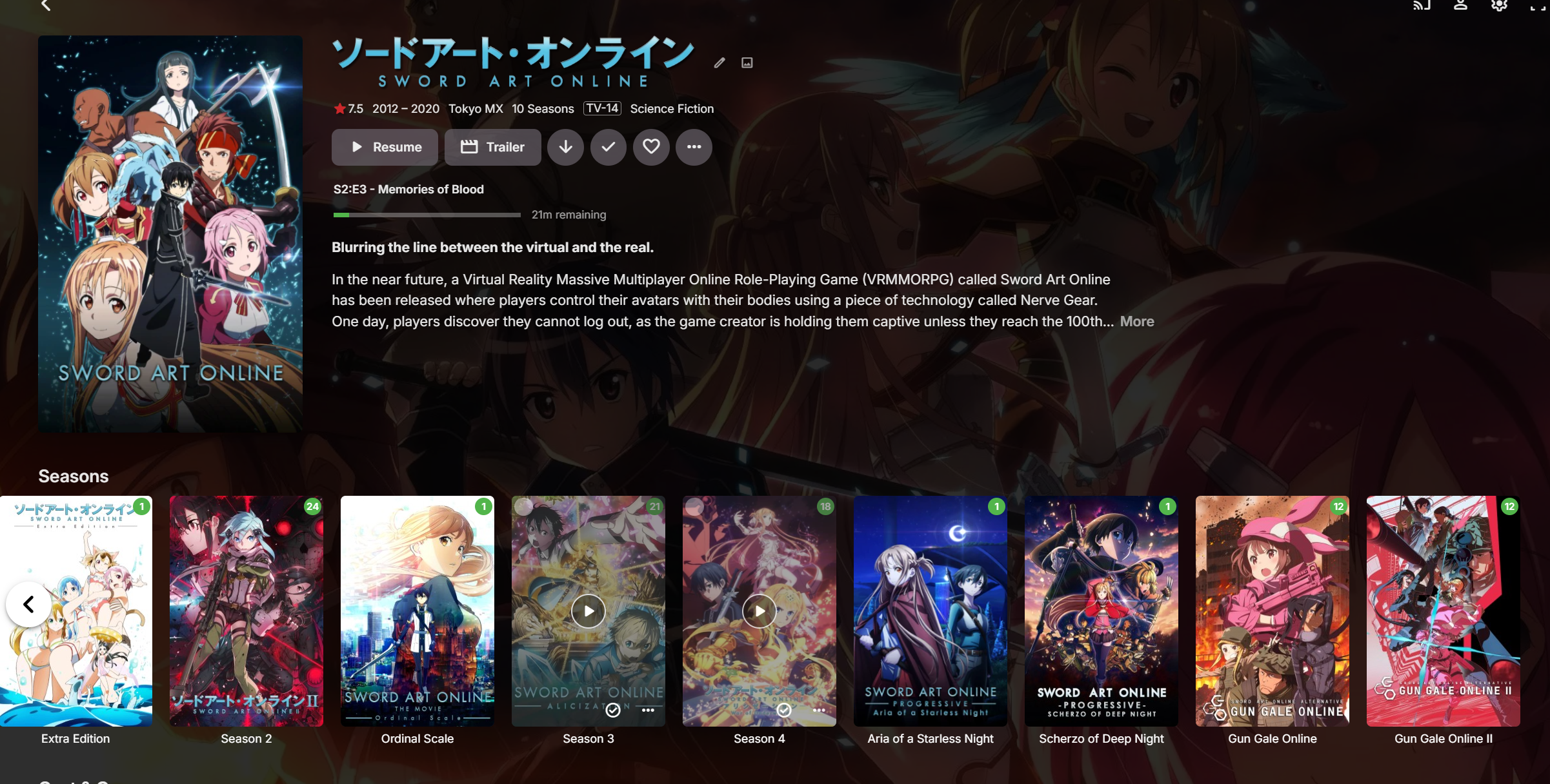 yikesezxd 2 Posted February 4 Author Posted February 4 ^ This is the show in question, on Desktop app. The only thing not in view is Season 1 which is to the left of Extra Edition. No issues with Season 1, there's just too much for the image to capture. Clicking the left arrow would show it. Gun Gale Online, and Gun Gale Online II (far right side) are the two "Spinoff Series" mentioned in the previous post. Absolutely zero issues with the above image---it is the Desktop app, and is exactly how I need it to be. Within the folder/Season itself on the Desktop app ^^^ As you can see, the episodes are simply the episode number within the season, followed by its title. This is the Mobile app ^^^ There is no folder view, so I can't go into a subfolder dedicated to the season like the Desktop app. Meaning some of the graphics for those individual Seasons (i.e. Seasonal Backdrops or Logos) seemingly get no use on mobile. Not really a big deal, but do take note going forward of the new formatting of the episodes; it now says S1:E1 - The World of Swords instead of 1. World of Swords. It's pretty obvious that the reason for this formatting is because on Mobile, with the lack of a folder view (to my knowledge, or in my circumstance) all of the episodes are jammed together into one giga-season. So if I were to keep going to the right, it would progress through to season 2, Ordinal Scale Movie, season 3, Season 4, the 2 progressive movies, then the 2 seasons of Gun Gale Online (spinoff). While this isn't ideal, it still retains the proper watch order I have set for the series, so that in itself is fine, but the main issue comes with something directly related to this. ^^^ Before I detail the main issue, an important preface; I want to point out that on Mobile app, by clicking the dropdown, I can click on the various Seasons. It does not go into a dedicated Seasonal folder for the selection, it instead points to/jumps to the episodes within the giga-season/jammed together episodes. As you can see from the images, the display names for the seasons have been retained. For example Aria of a Starless Night on the backend is actually Season 41, for ordering reasons. Regardless of how it is set on the Backend, I have it's display name as Aria of a Starless Night. ^^^ the above image shows what I mean when I say that it is set to Season 41 on the "backend" and the "display title" is referring to Emby's title section, which is also shown in the image. Here is the main issue. Gun Gale Online is set to Season 201 on the backend. It is set to display as " Gun Gale Online " Gun Gale Online II is set to Season 202 on the backend. It is set to display as " Gun Gale Online II " However, because the mobile app is not in folder view, and forcibly exposes backend Season categorizations within its titles, the episode titles all contain S201:E1 or S202:E1. While this is functional, it looks less than desirable. Logically, the theoretical solutions I would ask you about are: - Can I turn this forced mobile formatting off, or at least be able to edit it myself to display differently? Really, it should just inherit the display title of the season. It would be preferable if there was a option to turn on that would make it inherit that behavior. - Can I, on mobile, turn on folder view or somehow otherwise mimic the UI of the Web/Desktop App platform to avoid this formatting? App Settings > Home Screen > Default Screen > "Folders" option does not yield any changes for me. Unless I'm mistaken, that process is how I'm supposed to change into folder view on mobile. This is really weird, because rather than the mobile app lacking something that the desktop app has, it's more like the mobile app has an extra feature that is not desireable. Regardless, if neither of the two points above steers us in the right direction, do you have any other ideas? Thank you for your time, hopefully the formatting in this post made it a little easier to read.