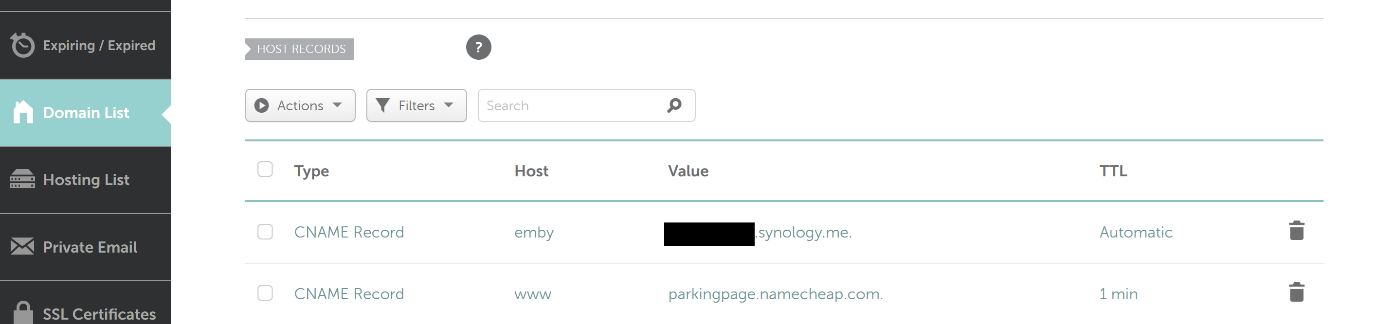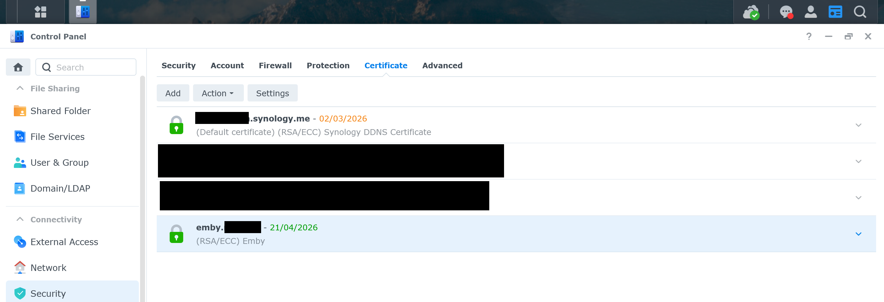 notla49285 48 Posted February 8 Author Posted February 8 This is now fixed, I don't know if there needed to be some propagation in Emby Connect somewhere but both the apps and the web access are now working. Two changes made: Remove the URL redirect in Name cheap DNS settings which was redirecting "emby"(.mydomain.net) to "https://emby.mydomain.net" Changed the port that the NAS is listening for inbound calls on from 443 to something else (in my case 44333) - so that the router port forwards from 443 inbound through to 44333 on the NAS, and the NAS's reverse proxy takes anything incoming from 44333 and routes it through to 8096 on the Emby server. I'm guessing that maybe something was contending for 443 on the NAS? It's worked that way before though, but meh not bothered now it's ok. @Luke just FYI yes these were correct and haven't changed throughout, attached are the settings (not on the laptop atm so mobile screenshots sorry) 1 1