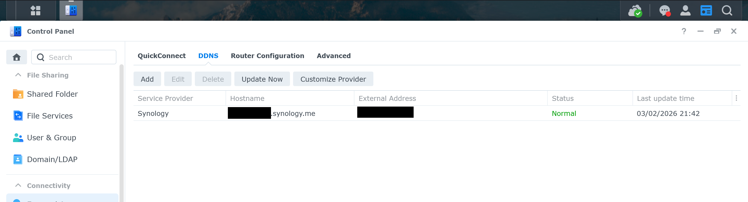 notla49285 48 Posted February 7 Author Posted February 7 After looking at that page: VPN - There is no VPN in use on my network Anti-Malware and Firewalls - There is an automatic allow rule on the router's firewall to allow incoming connections on 443 through to the NAS on 443, because the port forwarding has been set up, I'm actually not able to stop this allow rule because it's required for the port forwarding to work Local IP Address change - Both the NAS and the Emby server have reserved internal IP addresses at router level, even if they are set as DHCP on the devices themselves, the router allocates them the same IP and is still doing so Double NAT - There is no double NAT in use External Public IP Address change - This is automatically updated by the DDNS as shown in my configuration above Multiple Routers Double NAT - There is only one router in my house Multiple Servers - There is only one Emby server in my house ISP Blocking - None of the lines shown in tracert to 8.8.8.8 show the lines which indicate ISP blocking shown in the linked article, and the ISP has never blocked this before