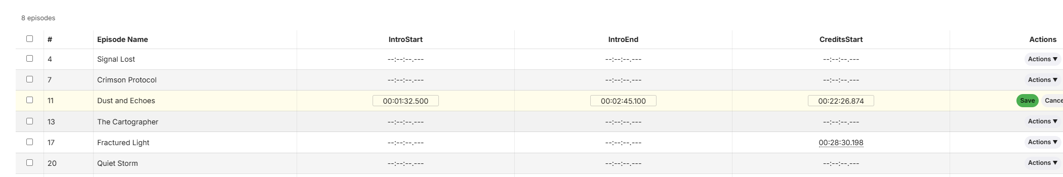 sydlexius 297 Posted February 13 Author Posted February 13 New release is out (minor changes to the Actions menu UX): https://github.com/sydlexius/Segment_Reporting/releases/tag/v1.2.0.4 Improved Unified Actions dropdown menu (#58) — Each episode and query result row now has a single "Actions ▼" button that opens a clean dropdown menu with Edit, Copy, Delete, and Set Credits to End options, replacing the previous row of individual buttons. Type-selective Copy and Delete (#58) — The Copy and Delete menu items now expand into submenus letting you choose Intros, Credits, or Both, so you can copy or delete just the segment type you need. Shared dropdown menu infrastructure (#58) — The menu system is built on reusable helpers in the shared library (theme-aware colors, submenu positioning, click-outside dismissal), keeping the code consistent across the Series and Custom Query pages. 1