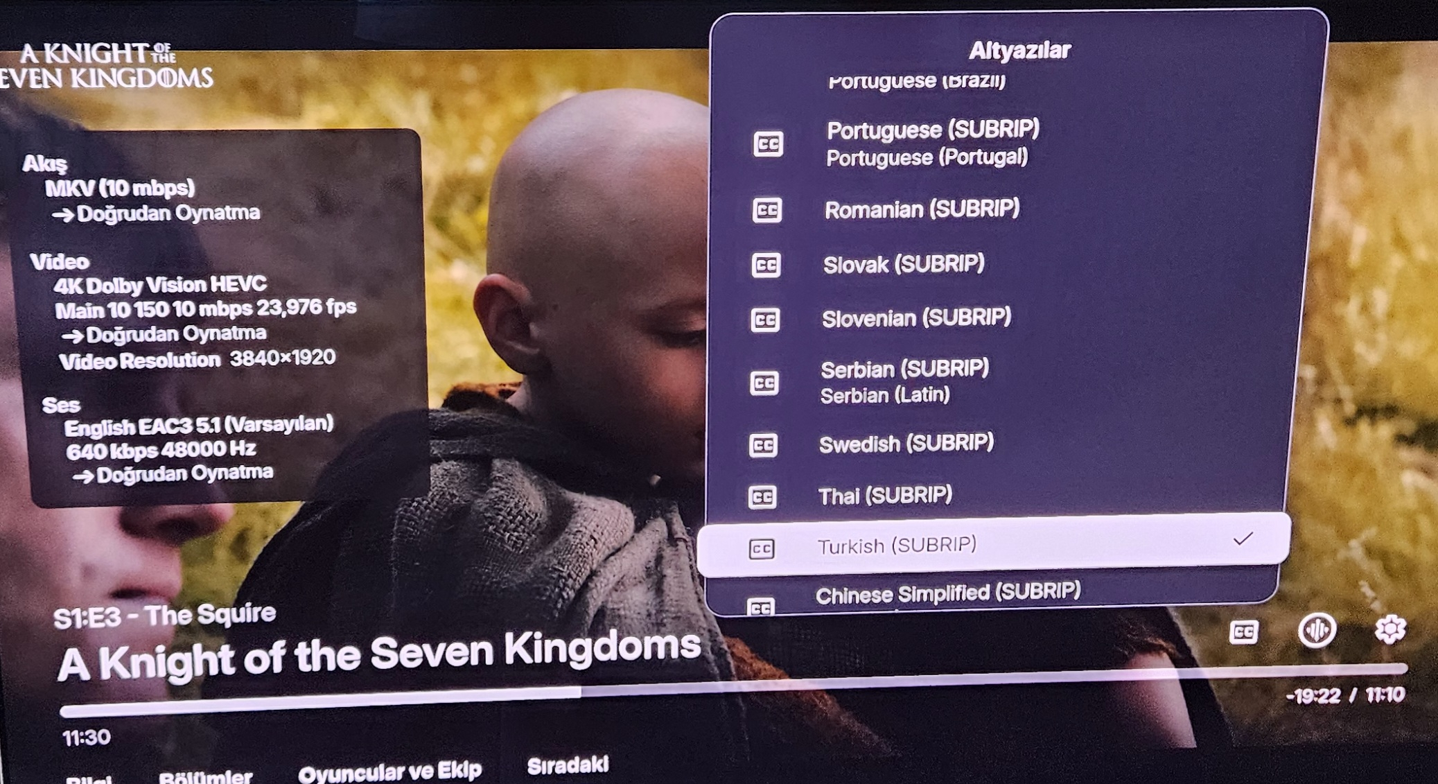 M3L1H 1 Posted Monday at 10:41 AM Posted Monday at 10:41 AM Hello, I have an issue with Turkish subrip. I have been using Emby for around two years, and this issue has existed since the beginning. If a video has subrips, most of them are displayed correctly. However, when I select Turkish, it only shows the last selected working subtitle (most of the time English). I made a test using the TV’s internet browser - the Emby web client, and Turkish subrip is displayed correctly there, so the subtitles themselves are not the problem. However, the Emby app on the TV does not show the Turkish subrip and continues using the last working subtitle instead. If I manually download a Turkish SRT file, it works without any issue at the app. I don’t understand how the web browser can display the Turkish subrip correctly while the TV app cannot. This happens with all videos. I also tested it on my android phone using the Emby app, and it works fine there. Samsung model number: QE55S95BATXXN Samsung firmware version: T-PTMDEUC-1710.0,BT-S Samsung Emby client version: Emby for Samsung 2.2.5 Emby server version: 4.10.0.3 Beta ( I use emby for 2 years, it is an existing issue from the beginning) embyserver-63906837725.txt hardware_detection-63906837728.txt embyserver.txt