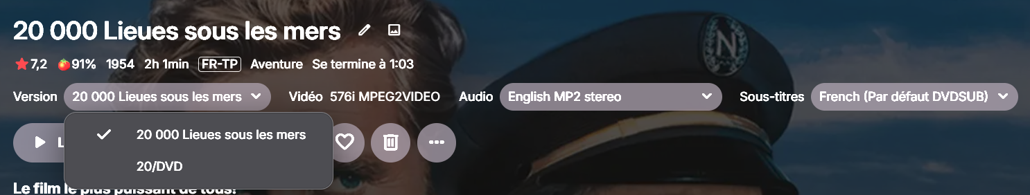 R0boc 1 Posted April 13 Author Posted April 13 Hi @Luke I did this : My video_TS are under the directory : 20.000 lieus sous les mers (1954)/20.000 lieus sous les mers (1954)/VIDEO_TS/xxxx.vob For this film, my DVD format is not working with Emby and I do not know why (some of my movie don't work with Emby, reason why I want to replace them with mkv) buuut it works, I can see both DVD and mkv versions : I will be able to compare my mkv and dvd files before deleting the DVD structures on my server (except for some files... VLC will help). Thx for your help 1