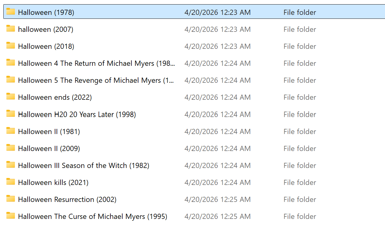 Nelcruz 3 Posted Sunday at 08:41 PM Posted Sunday at 08:41 PM Hi, quick question. Can you please explain what I am doing wrong? For example, say I have two movies Carrie (1976) and Carrie (2013). When updating library, it will always populate both movie folders with nfo, jpg and png files for Carrie (1976). This happens consistently. Another example would be Halloween (1978) and Halloween (2018). Thank you for your time. Library is set to use TMDB.