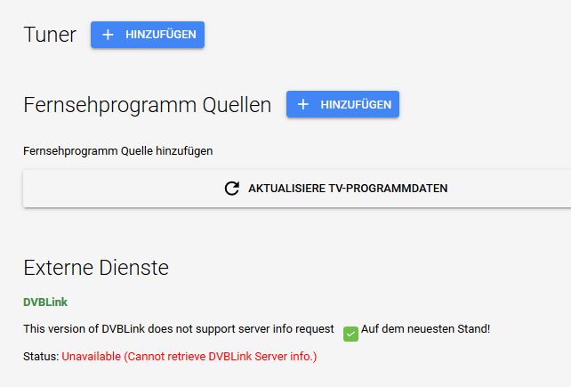 Spaceboy 2573 Posted May 1, 2016 Posted May 1, 2016 Hi, I'm using emby since a while and I'm really happy about all the nice features. I'm using DVB-LInk as well. Both works excellent. Now I tried to connect both using this app and I failed again and again. I'm quite sure that I just miss a configuration parameter ... but maybe someone can give me an advice which on. I'm using a Windows 8.1 machine with media center as base. Emby Server version is meanwhile upgraded to 3.0.5933.0. DVB_Link is version 5.5.0 DVB_Link Plugin Version 1.1.6.0 emby Server reports: C:\Users\KuS_Adm\AppData\Roaming\MediaBrowser-Server\data\notifications.db 2016-05-01 16:43:33.4588 Info App: [DVBLink] - Initialising 2016-05-01 16:43:33.4588 Info App: [DVBLink] - Configuration updated 2016-05-01 16:43:33.4588 Info App: [DVBLink] - Connecting to server : http://192.168.178.37:39876:8080/cs/ 2016-05-01 16:43:33.4745 Fatal App: [DVBLink] - It's not possible to Ensure a connection to the Server *** Error Report *** Version: 3.0.5933.0 emby web interface reports under external service: status: unavailable (Cannot retrieve DVBLInk Server info DVB_link streams TV programs live to the IPAD without any problem Logs and screenshots are attached. I would really appreciate any advice which helps me to rootcause the problem. ...and please be lenient with me if I've done something wrong within my post, it is my first attempt in the Forum take out the port number from the end of the Dvblink server address