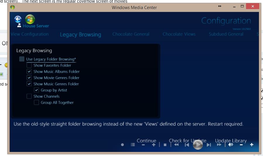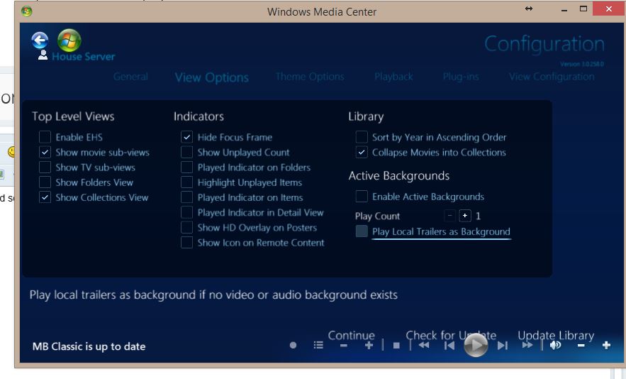 AdrianW 1058 Posted March 19, 2015 Posted March 19, 2015 If I use this new interface, can I modify the sub-menu (ie) I don't want or need to show Favorites or resume for example. If you don't want Favourites or Resume - then you may as well just turn on Legacy Folder Browsing. The new views aren't really going to give you anything useful within MBC. If you turn on Legacy Browsing you can also turn on the old Movies By Genre option which will then appear on the EHS. Views will combine like content - so if you had multiple movie folders (e.g. Classics, New Releases, Foreign, etc) - then they'd all be combined into a "Movies" view, and multiple TV folders (TV, Cartoons, Anime, etc) would all end up in a "TV" view. I think many long-time Media Browser users prefer the Legacy Browsing option (I know I do). 1