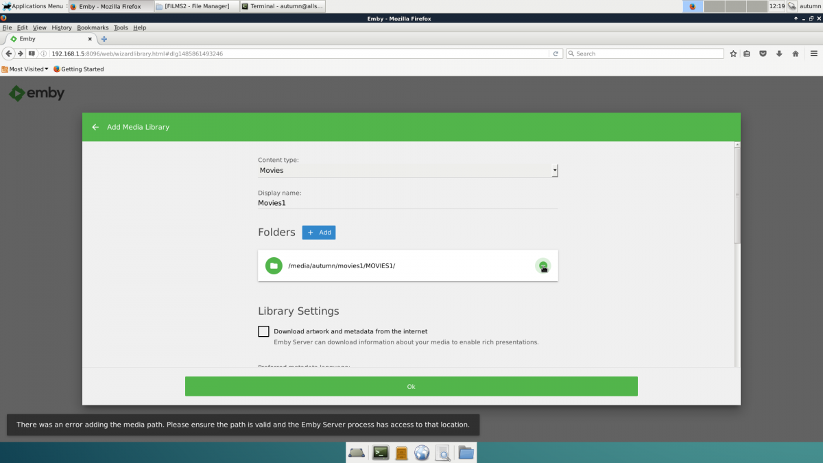 morpheus1 2 Posted January 31, 2017 Posted January 31, 2017 Hi @@morpheus1, the mono runtime does not natively support unc network paths so what you need to do is mount the path locally within Debian and then add the mounted local path to Emby. @@Luke. You really are great. I thank you. You encourage me to stick with emby. And as I read about it in Linux Format, I'm sticking it out as well because it's pure open source. Here's what I've done. I added the drives to fstab, using uuid (UUID /mountpoint/ ext4 /defaults 0 0) The label of the disk is movies1 and the folder with the data is MOVIES1 This means they're auto mounted on boot. Once mounted, I then click on them to open the folders on them to get to the folder with data. Then I copied the complete directory path from the File Manger, open emby on the browser and then added that path as seen on the picture. And then hit "OK". This is what I understood by what you asked me to do, which to me makes sense than the loads of solutions I read on the forum. As you would see below, the result is not good, as seen in the same picture. I am out of ideas. Can I encourage you to see if I you can find a way around mono to make this part much efficient, as virtually everyone using emby on linux would have to solve this problem. And that's not a good thing. When I had OMV, I did not have to deal with it like this, so perhaps that's an idea. Anyway, I'm waiting and being patient and thankful for your help. Can you say when next you expect the release that settles the profile issue for the WD Plus box. I look forward to your response in proceeding. Can I also make clear that the hard drives are not off a server. They are physically attached to the machine.