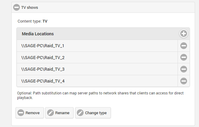 xnappo 1611 Posted April 5, 2015 Posted April 5, 2015 I'm not clear on "collection". In Emby I've got TV shows defined by 4 different locations, i.e. base directories. screenshot attached That is just one collection with multiple paths. Not what I was talking about. What you are seeing is the normal background syncing. It should be somewhat faster in 0.0.16, but in general don't worry about that guy and just hide the dialog in Kodi settings.