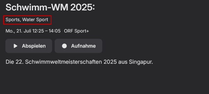 Bims0n 14 Posted July 21, 2025 Posted July 21, 2025 Hi guys, not sure if this is the right thread for this problem (if not then pls move). Currently I use the tvh backend (4.3~808a87a) in successful combination with Emby Server (4.8.11.0). Working wonderful, the only (cosmetic) behaviour I am riddled about is the genre of the channels. They are correctly scraped in tvh via OTA EPG EIT in my native language, however when they are transfered to emby they change to english. I am also not sure if this an emby or tvh issue, but I believe it is caused by the import of the tvh emby plugin. Any solutions on how to keep the native genre selection and avoid translation?