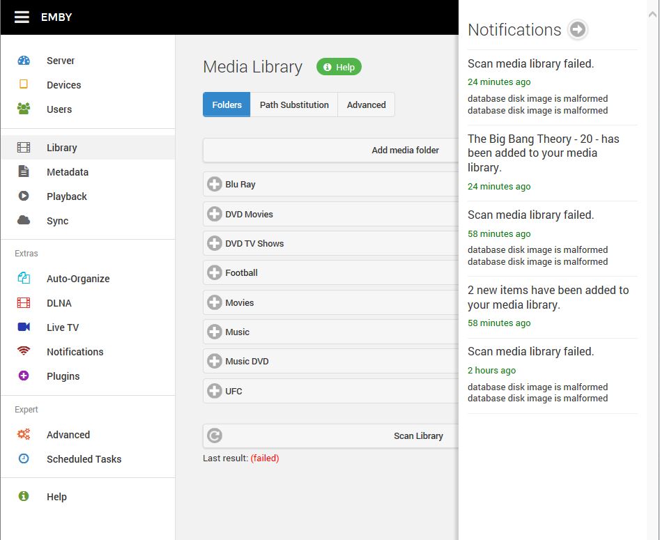 tsmarcus 2 Posted April 10, 2015 Posted April 10, 2015 getting a message in my Notifications, Scan media library failed. it happens when I force a refresh & when the program runs at the set time. EMBY Sever Version 3.0.5572.0 EMBY Classic Version 3.0.258.0 Hope someone can help. server-63564273203.txt
