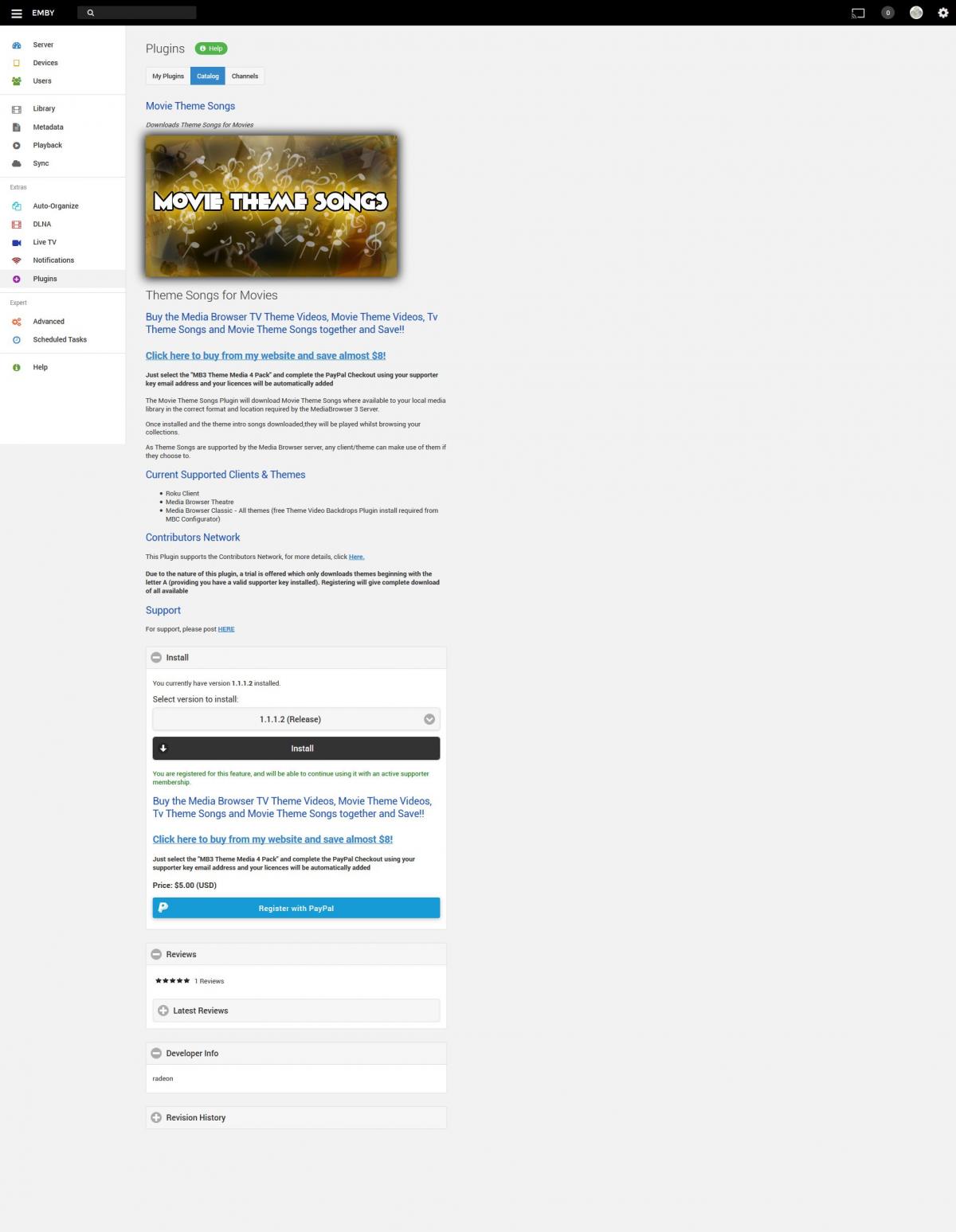 GoodGuy98 0 Posted May 1, 2015 Posted May 1, 2015 (edited) My system is running Emby Server Version 3.0.5597.1 on a Win7 64-bit system. I logged into Emby Server and went to the Plugins. Next I selected the Catalog. Most of the Plugins overlay the installed version of the Plugin on the graphic if one it is installed, but it is missing it occasionally. I am attaching three jpg screen captures to help display the problem. The file Plugins-Catalog-Content-Providers.jpg was captured using ScreenshotCaptor and I selected just the region showing the program without requiring magnification. The other two files capture the web page to show the entire contents so it is shown in context. I used Internet Explorer 11 to view the images zoomed to 400%. I went to the View menu / Zoom and set 400%. It allows the viewer to scroll the image until the Content Providers area is displayed. In my case all four of the Theme Plugins are installed, but only TV Theme Songs shows the installed version "1.1.1.1 installed" in the lower left of the displayed graphic. No log was included because it didn't seem like it was useful. If I am wrong, I can post it if needed. Edited May 1, 2015 by GoodGuy98