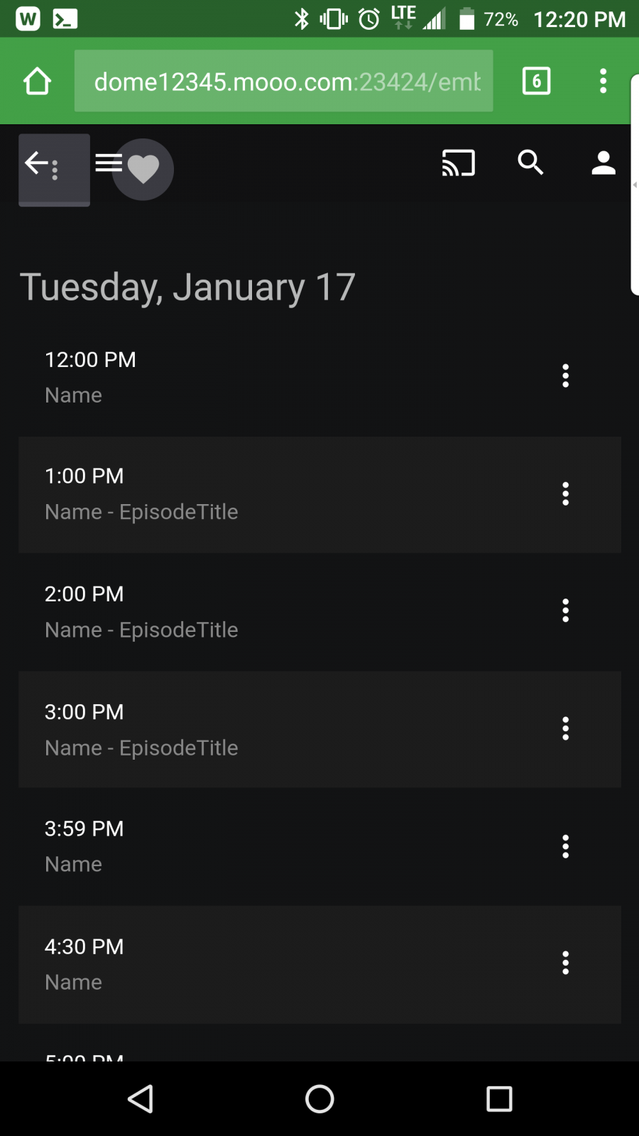 domenic 33 Posted January 17, 2017 Posted January 17, 2017 (edited) I still believe there is something a little off in Emby and the Guide data storage. Here is the test I ran. I configured one channel in VDR. Configured One Day for Guide in Emby. Setup the following test code: public IEnumerable<ProgramInfo> GetPrograms(Stream stream, IJsonSerializer json, string channelId, ILogger logger) { var root = json.DeserializeFromStream<RootObject>(stream); UtilsHelper.DebugInformation(logger,string.Format("[VDR] GetPrograms Response: {0}",json.SerializeToString(root))); logger.Info(string.Format("[VDR] Display Root Object: {0}", json.SerializeToString(root))); if (root != null && root.events != null) { return root.events.Select(epg => new ProgramInfo() { ChannelId = channelId, //Id = epg.id.ToString(), Id = "124941420000" //Overview = Regex.Replace(epg.description,@"\t|\n|\r", ""), //Overview = Regex.Replace(epg.description,@"[^A-Za-z0-9]", " "), Overview = "Overview", StartDate = ApiHelper.DateTimeFromUnixTimestampSeconds(epg.start_time).ToUniversalTime(), EndDate = ApiHelper.DateTimeFromUnixTimestampSeconds(epg.start_time).ToUniversalTime().AddSeconds(epg.duration), //Genres = new List<string>(), Genres = new List<string>(new string[] {"sports", "movie"}), //OriginalAirDate = parse infom from Description //OriginalAirDate = null, OriginalAirDate = DateTime.UtcNow, //Name = Regex.Replace(epg.title,@"[^A-Za-z0-9]"," "), Name = "Name", //OfficialRating = parse infom from Description //OfficialRating = null, OfficialRating = "G", //CommunityRating = null, // not provided CommunityRating = 10, //EpisodeTitle = epg.short_text, EpisodeTitle = "EpisodeTitle", Audio = ParseAudio(epg.description), IsHD = false, // not provided default to false IsRepeat = false, IsSeries = epg.description.Contains("series", StringComparison.OrdinalIgnoreCase), HasImage = (epg.images > 0), ImageUrl = (epg.images > 0) ? (_baseUrl + "/events/image/1/" + epg.id.ToString(_usCulture)) : null, IsNews = epg.description.Contains("news", StringComparison.OrdinalIgnoreCase), IsMovie = epg.description.Contains("movie", StringComparison.OrdinalIgnoreCase), IsKids = epg.description.Contains("kids", StringComparison.OrdinalIgnoreCase), IsSports = epg.description.Contains("sports", StringComparison.OrdinalIgnoreCase) || epg.description.Contains("Sports non-event", StringComparison.OrdinalIgnoreCase) || epg.description.Contains("Sports event", StringComparison.OrdinalIgnoreCase) || epg.description.Contains("Sports talk", StringComparison.OrdinalIgnoreCase) || epg.description.Contains("Sports news", StringComparison.OrdinalIgnoreCase) }); } return new List<ProgramInfo>(); } Note I am hard coding most of the variables - the exceptions are ChannelId, StartDate, and EndDate. The result should be a fully populated Guide of one channel with the same program. Which I see. When I select the channel I get the screen shot attached. It appears sometimes I get Name and sometimes I get Name - EpisodeTitle but all of the entries should be identical, with the hardcoded values Name - EpisodeTitle.Any idea based on the code why some of the data would be dropped? Edited January 17, 2017 by domenic 1