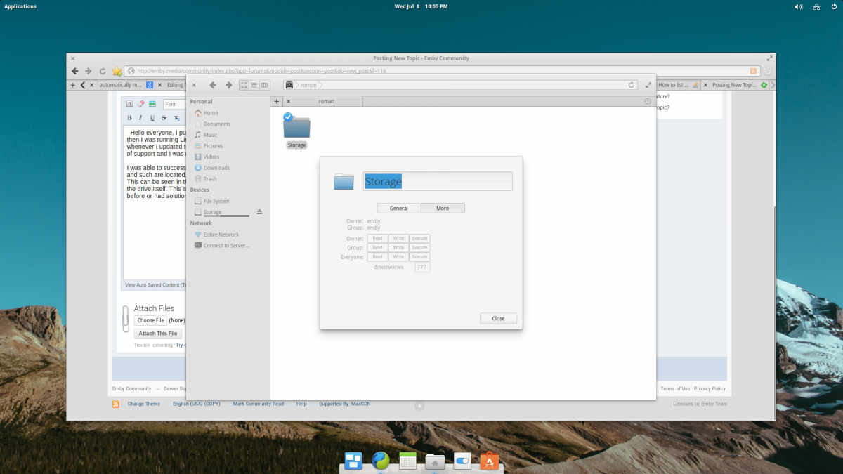 Hello everyone, I put all my DVD's, CD's and home movies onto a server about a year ago so that We could clean up the house and store everything in one place. Back then I was running Linux Mint Petra with Plex as my media server choice, it was the only one I knew about. I kept coming up with problems with read/write permissions whenever I updated to Ubuntu or a newer version of Linux Mint, so I just decided not to touch it, and it worked for the most part for a long time. After a while, Petra fell out of support and I was no longer able to update my system. I recently decided to install elementary OS (based on Ubuntu 14.04) and make the switch to Emby.