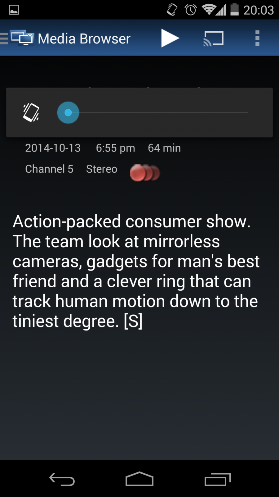 Redshirt 1487 Posted October 17, 2014 Author Posted October 17, 2014 Version 2.0.87 is now on it's way. It contains fixes to seeking and non-hls playback. The now-playing overlay will now vanish as expected for TV recordings just like it does for other media. 1