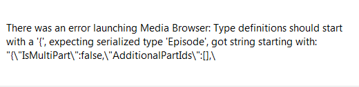 rmarcuse 6 Posted November 24, 2013 Posted November 24, 2013 I get this error in the above file, when I start MB3 Server. When I close the error message box MB3 Server shutsdown but if I leave the box open it keep run. The only change I made to my system was to install MB Theater so I uninstalled it but the problem seems to persist.
