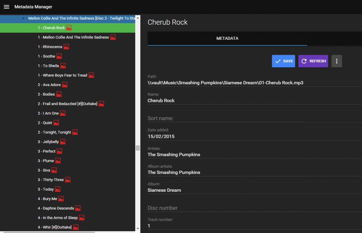 Griffo 3 Posted October 30, 2015 Author Posted October 30, 2015 This is doing my head in. I have a) upgraded to latest version deleted music library c) deleted all .xml and .nfo files in this artists folder e) run a database clean f) renamed folders to remove brackets etc g) re-added i still can't get these albums to show properly. Windows explorer etc all show the correct ID3 info by Emby keeps throwing them in the same weird album. Any thoughts? Current structure is: D:\Music\Smashing Pumpkins\Adore D:\Music\Smashing Pumpkins\Gish D:\Music\Smashing Pumpkins\Mellon Collie And The Infinite Sadness D:\Music\Smashing Pumpkins\Mellon Collie And The Infinite Sadness\Disc 1 D:\Music\Smashing Pumpkins\Mellon Collie And The Infinite Sadness\Disc 2 D:\Music\Smashing Pumpkins\Pisces Iscariot D:\Music\Smashing Pumpkins\Siamese Dream yet it still displays in emby as per the above thumbnail. Log (1).zip