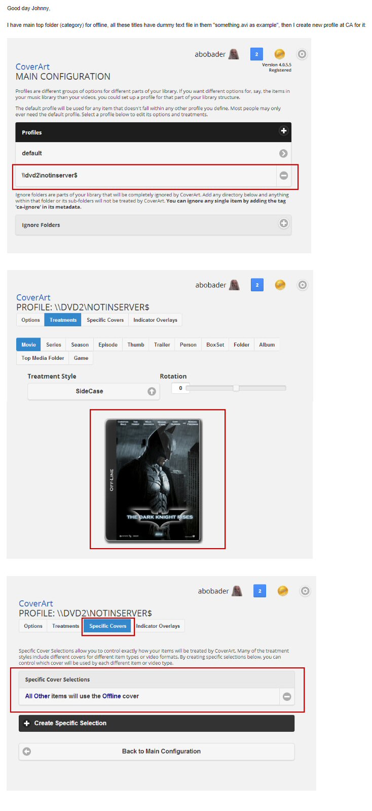 JohnnyM 40 Posted November 16, 2015 Author Posted November 16, 2015 Nothing in the library set up changed! Your statement "That particular value in "Treat Image As" should be getting ignored but I would remove it." doesn't make sense to me. How does Coverart know that a movie is Offline unless you tell? That is the only place I can see that it would know since your said "I don't believe ca has ever automatically applied the offline treatment to .disc items although that is a good idea."