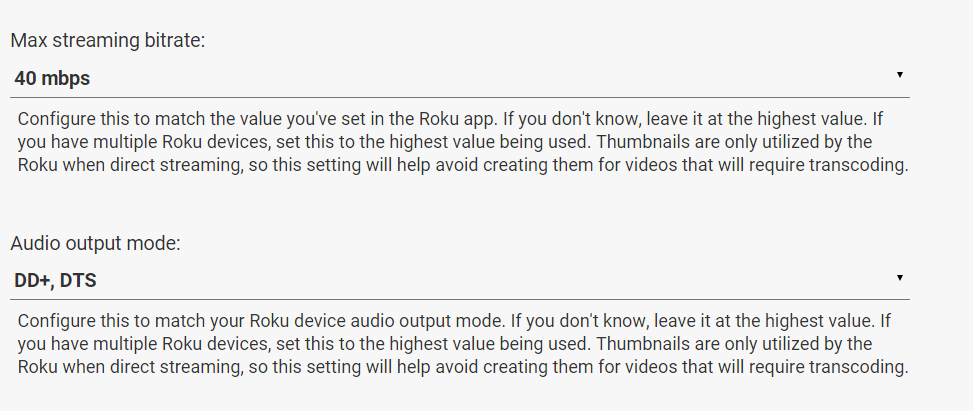 kingstonian 1 Posted December 2, 2015 Author Posted December 2, 2015 Correct. you only get bif files for content the roku will direct play, because roku will not use the bif when transcoding is used. What are your following setting's? Same as yours..