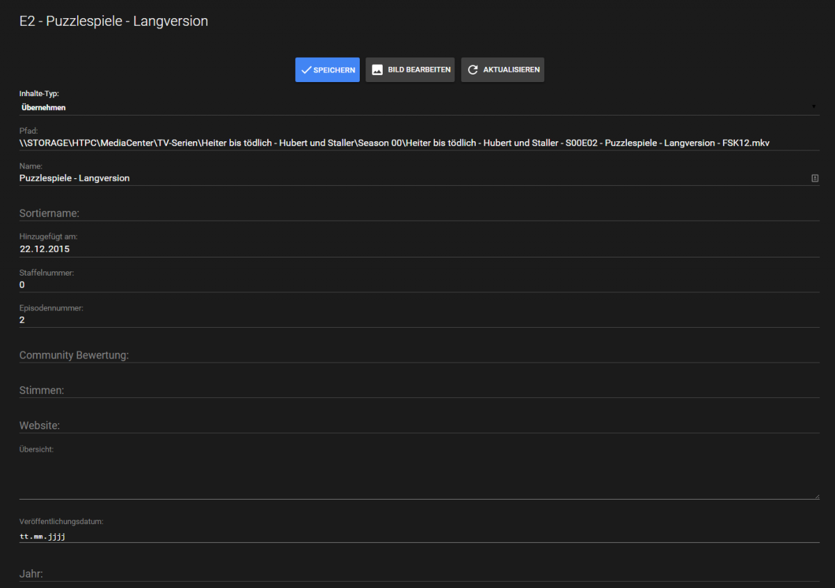 Tolotos 61 Posted December 22, 2015 Author Posted December 22, 2015 Hi, Emby version is 3.0.5781.8 I attached the meta data values. Do you need more information? -- Tolotos