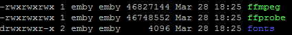 aleco25 1 Posted March 29, 2016 Author Posted March 29, 2016 the server is unable to launch ffmpeg for some reason. i would check that these execuables have execute permissions var/lib/emby-server/ffmpeg/20160215 the server does do this automatically but perhaps it didn't work in your environment. I've checked and it looks like they have full permissions. I've included a screenshot. Does this look correct?