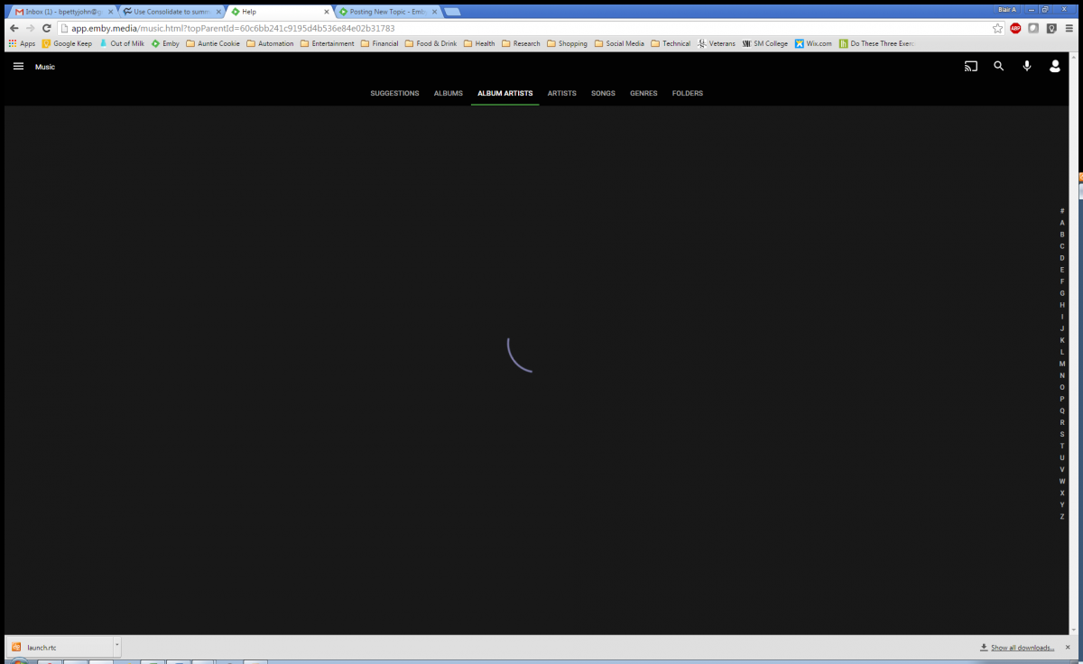 theReverend 4 Posted June 2, 2016 Posted June 2, 2016 Hello Emby, I have a rather large library: 1500+ Movies 3100+ TV Shows 10300+ Albums (130K songs) The movie/TV database processes quickly, but the music is horribly slow (due to size, I assume - see screen shot - the little wheel keeps on turnin'...). Is there a way to default (server side) the music viewing options to text only (no thumbs)? Is there something I'm doing incorrectly? I like the way WMC handled music lists and allowed you to scroll through the library as a text field... Note: I hung on as long as possible with WMC and the Emby WMC version for the last few years. I made the plunge a few months back and upgraded (2) HTPC's and (1) Server to Windows 10 and have now completely converted to Emby Theater... I love it. There's a few bugs here and there but the development is great and I thank you very much for the work you've put into it. Great Job Emby Team. Blair