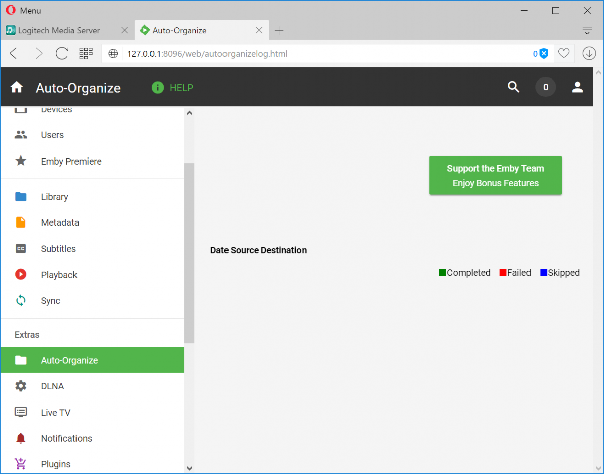 So this AM I'm getting the attached on the auto-organized html page.... still seems to be doing the auto-organize, but no button to clear/organize, or log info... any ideas? I've done a restart with no luck.