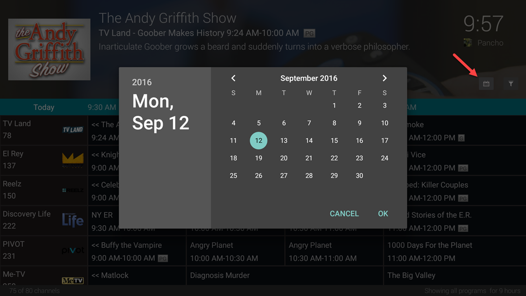 Pancho 9 Posted September 12, 2016 Posted September 12, 2016 Server Version 3.0.7100.0 (runs on Unraid 6.1.9 Docker) Nvidia Shield TV (6.0 SW version 3.2) Android TV Beta (1.2.45g) Updated to the latest beta 1.2.45g and noticed that I when I select the Live TV Guide page option in the upper right hand corner (see attached pic), I am unable to select a day to change using the remote or the game controller. I can select the month, but the I can never seem to get into the days of the month. If I hook up a my USB keyboard, I can easily select the day via the mouse. Am I missing something here? Pancho