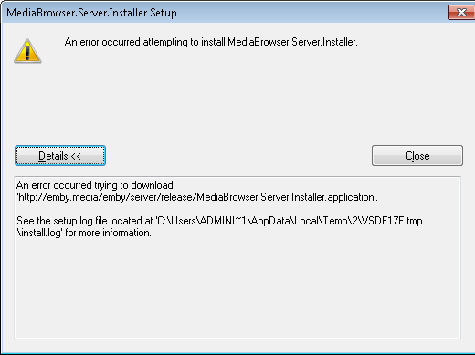 apriliaedd 0 Posted September 20, 2016 Posted September 20, 2016 (edited) Hi I'm trying to install emby server on my WHS 2011 media server but when i ran the set up file it installed the .net framework then asked for a reboot. once the server rebooted nothing more happened. if i run the installer again i get an error the log file it refers to is install.log I've tried rebooting again and downloading the setup file again but it just keeps on giving the same error, internet access is working, ive disabled any downloads on the network and tried again but still the same error. any suggestions? Cheers Edd Edited September 20, 2016 by apriliaedd