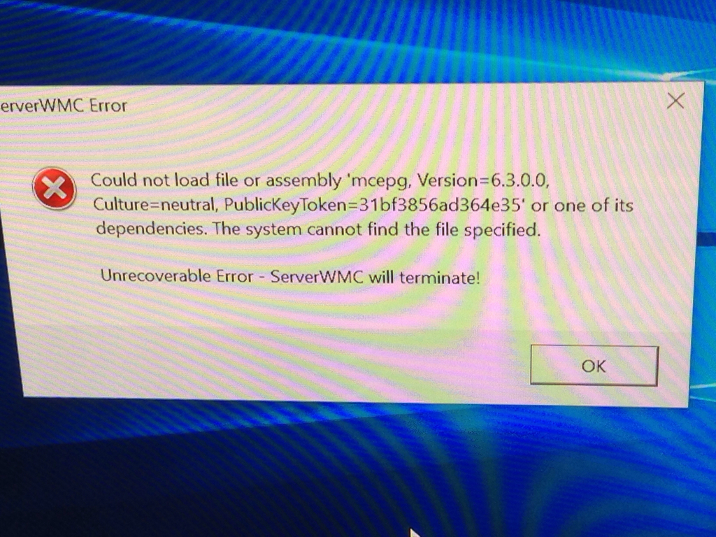 krustyreturns 191 Posted October 27, 2016 Posted October 27, 2016 (edited) The problem you are seeing is due to our installer not recognizing the dll versions that got installed in wmc. I don't why this error happens on some systems and not on others. You can can fix this by hand editing a file inside of the serverwmc project directory. Go to the serverwmc install directory and edit the file: ServerWMC.exe.config in a text editor. Inside the file, everywhere you see: <bindingRedirect oldVersion="0.0.0.0-6.3.0.0" newVersion="6.3.0.0"/> change it to <bindingRedirect oldVersion="0.0.0.0-6.3.0.0" newVersion="10.0.0.0"/> Then save the file and restart serverwmc. Edited October 27, 2016 by krustyreturns