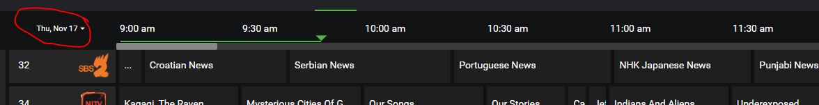 Noel-M 11 Posted November 17, 2016 Posted November 17, 2016 Emby Server: 1.0.8500.0 ServerWMC Plugin: 1.0.0.74 LIve TV - Channels listing (for all channels) shows wrong day. First picture shows the guide for Thursday ... Second picture shows the Channels listing for SBS2. Note it says FRIDAY (programs are correct for Thursday). Maybe relevant (??) - I am in UTC+10 timzone.