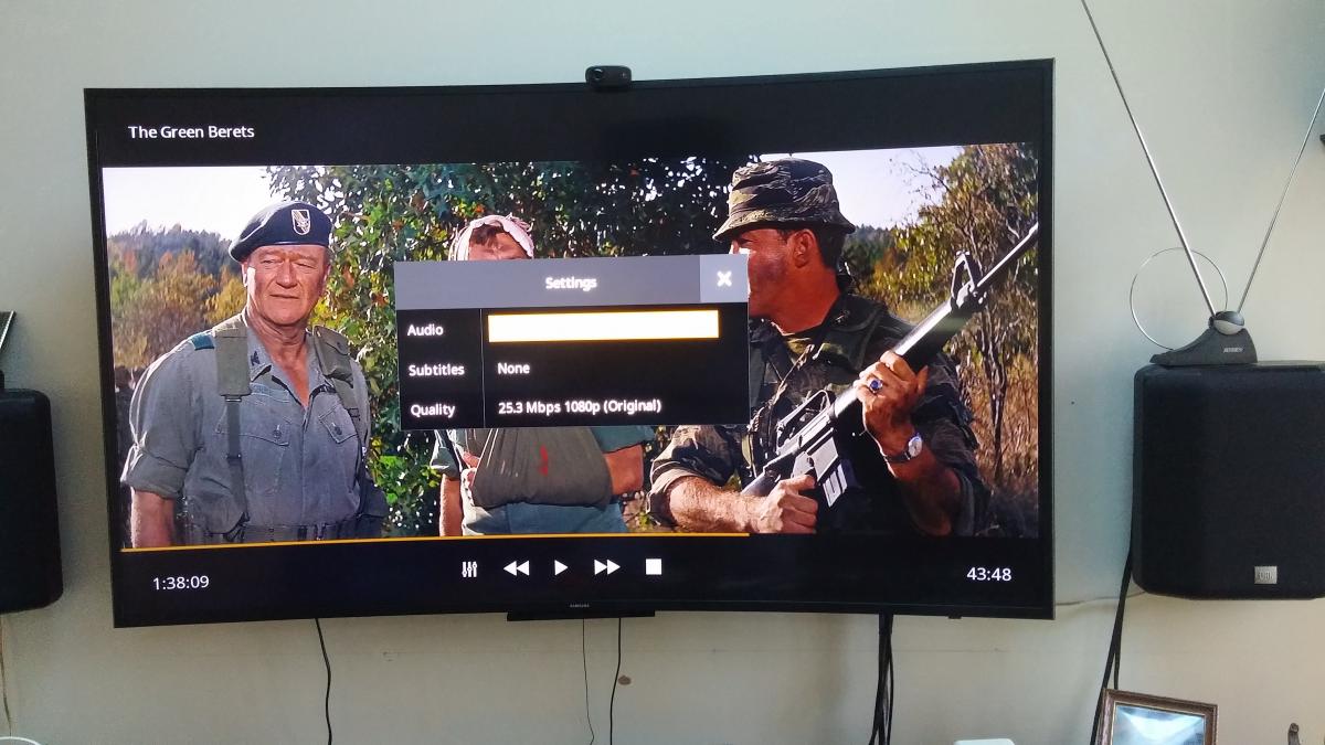 clarkss12 304 Posted November 21, 2016 Author Posted November 21, 2016 For Green Beret's, according to the Samsung K-series specs, VC1 is supported only to 20Mbps and TrueHD is not supported. I'm sure Plex must transcode this as well. Your transcoding at 11fps is a problem here. I think you can reduce the transcoding quality which may help if your box can't process it faster. This should make it play like Plex. If you can provide a short sample to download with the same format I can test it to confirm whether DirectPlay is possible but I expect not. For the Fugitive, DirectPlay of MPEG2 in mkv container was added recently, this release may be the version waiting to be published. DirectPlaying of subs without ffmpeg extraction is testing and will possibly be in the next submission after the current is released. I agree with what you said, however, Plex played "The Green Berets" flawlessly and my Denon AVR showed Dolby Digital. I don't understand how it showed Dolby Digital when "mediainfo" did not show as a audio format, but it did. How can I create a raw short section of that video? I added some pics of it.