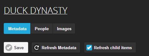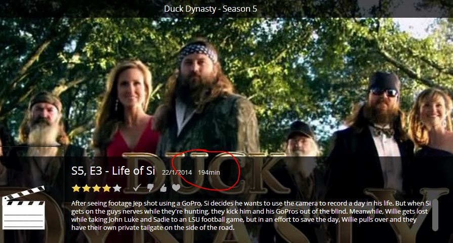 charles2515 2 Posted January 24, 2014 Posted January 24, 2014 (edited) Hi All, Im having this problem where the Runtime Indicated is Wrong by Alot (a typical 21 mins Episode Shows up as 194 Mins) example Duck Dynasty S5 E3: This only happens to Tv Episodes that i have on Automatic Download in an RSS Feed. Its as if when the Episode was downloaded the Runtime wasnt available at that time. If i manually download an Episode thats been out for more then a Day or two the Runtime will be Correct. I do Have checked : 'enable Automatic Updates from The TheTVDB.com ' but 4-5 days later the Runtime remains incorrect. To fix it I go in the Web Client, Click Edit and Hit Refresh Meta Data and it gets fixed within 2 sec. Doing this daily is Annoying and without this the Tv shows never reaches Watched Status because you can only watch 21mins/194mins. Anyone has any idea on why this is happening or a way to trigger a Metadata Refresh on a Schedule ? Thanks, Edited January 24, 2014 by charles2515