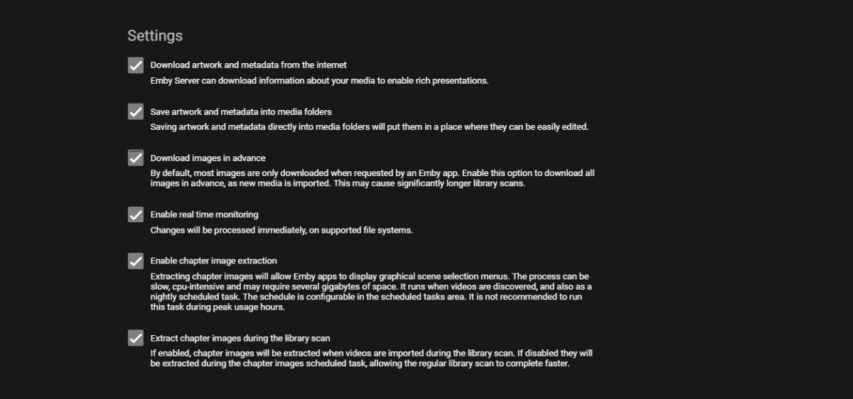 ebr 16169 Posted December 30, 2016 Posted December 30, 2016 @@ebr, is that the only setting I need to worry about? For now I am disabling the top 3 options. Since the stable version does them as well. Library Settings.PNG That should be fine. I run two servers pointing at the same library by disabling those options on my dev box and just letting the production one do all the work.