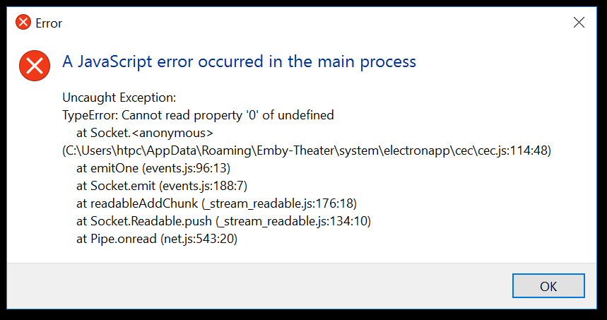 sansoo22 11 Posted December 27, 2016 Posted December 27, 2016 This could be something I missed in the documentation or setup process but I was able to reproduce it twice doing a fresh install of Emby Theater on a fresh install Windows 10 Home. First attempt was on a REALLY slow 5400rpm platter drive so I thought maybe the install just crapped the bed. The second attempt was on a Samsung 850 EVO SSD with the same results. Emby Theater will load just fine after this but remote features do not work. Please see the attached image for the full error. If I install CecTrayInstaller v1.67 the error goes away and everything works as it should for the most part. Sometimes the HDMI-CEC adapater will wake the pc and then immediately put it back to sleep when i hit power on my TV remote. I was hoping it was an issue with the CecTrayInstaller application and not Emby. However I really have no way of testing this. Does Emby require CecTrayInstaller for the pulse8 drivers to work correctly?