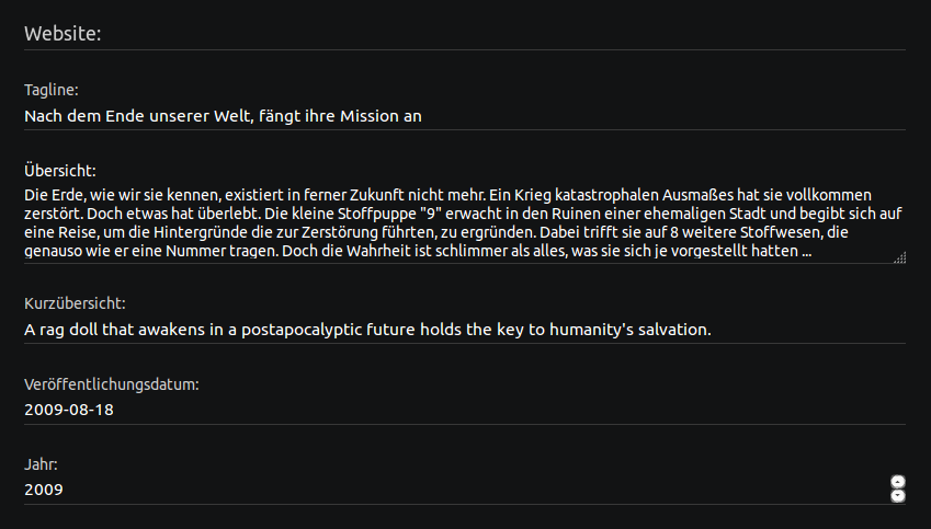 kalle 4 Posted January 8, 2017 Author Posted January 8, 2017 @Luke: OK, no localized data for 'short overview'. Thanks for clearing. I'm using Emby for Kodi and I've edited the skin code, so now using the normal overview and only fall back to the english short when empty. It's OK for me. Just checked, many older movies don't have a tagline. (With preferred language to german and omdb at first, tmdb at second for downloading metadata.)