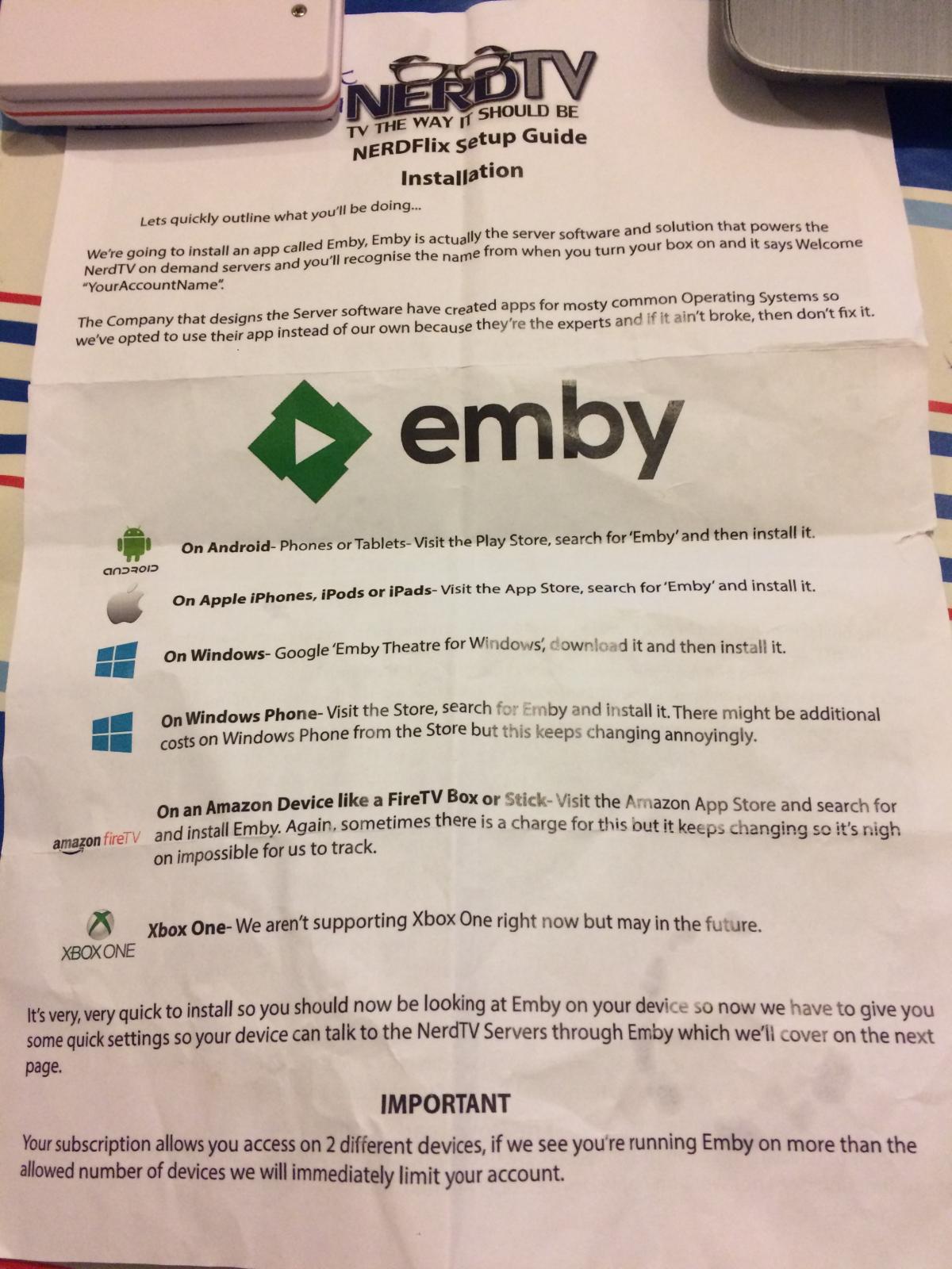 Dperry 0 Posted January 12, 2017 Author Posted January 12, 2017 Yes I have created an account, via my laptop. However I kept getting that Alert error when attempting to create an account via the Emby App. https://www.thesearchnerds.co.uk The main thing they have is the Nerd TV box, which works great. However they also have Nerdflix, which allows you to access all their movies and series etc... via Emby.