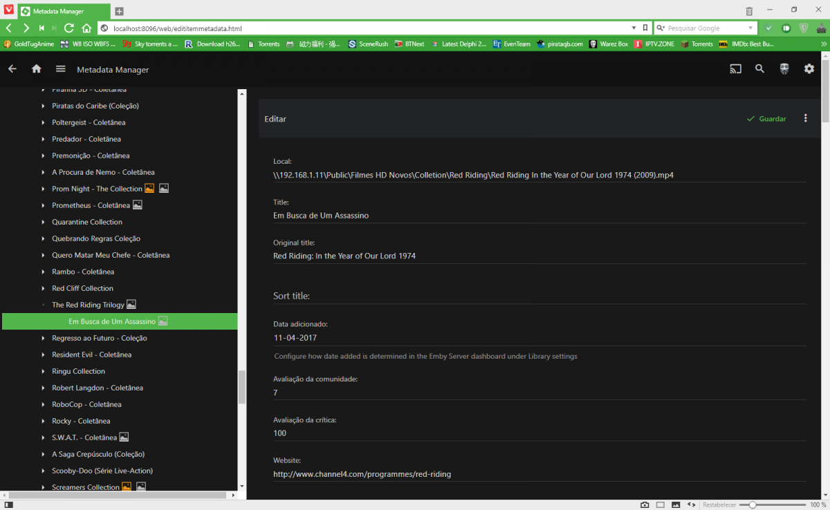 Happy2Play 9780 Posted August 26, 2017 Posted August 26, 2017 (edited) hi again @Happy2Play i think i found the problem, the Red Riding collection only show was 1 movie + 2 parts but they are 3 diferent movies in same year Red Riding: In the Year of Our Lord 1974(2009) Red Riding: In the Year of Our Lord 1980(2009) Red Riding: In the Year of Our Lord 1983 (2009) The Red Riding Trilogy (2009) Maybe are more with same problem. Tested and verified this stacked file issue is resolved in the beta branch. Edited August 26, 2017 by Happy2Play