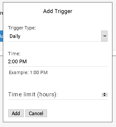 dbowles1975 25 Posted February 12, 2017 Author Posted February 12, 2017 Ok, I think I found the issue... You tried it with 2:00 PM? If you try it with 14:00. Do you have the same problem? I was trying it with 12-hour time based on the example (1:00 PM) on the add trigger screen. If I try it with 24-hour time it adds it as 12-hour time (e.g. 14:35 is added as 2:35 PM). With Edge it works with 12-hour time.
