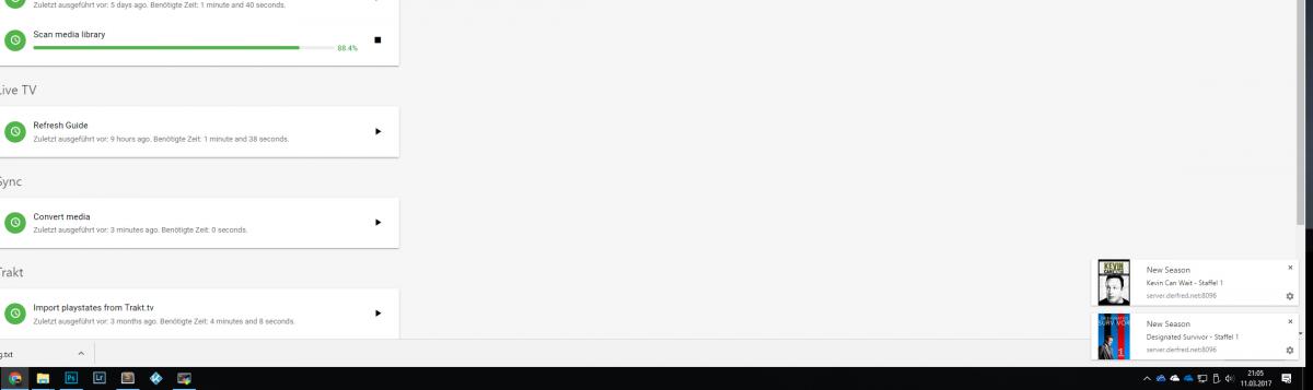 sualfred 677 Posted March 20, 2017 Author Posted March 20, 2017 @@Luke I've added a new show with the Auto Organize feature today, and it wasn't automatically added to the library. I got the popup notifications about new episodes but the listing of the show and the season wasn't available. I've waited a couple of minutes and nothing has changed, but with a manually triggered library scan it was added. And: I still get the annoying notifications about Kevin Can Wait and Designated Survivor.
