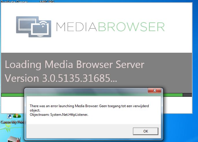 Bizzy 0 Posted February 8, 2014 Posted February 8, 2014 Hi, Before updating to the last update I had some problems that Mediabrowser classic froze. After restarting the problem was gone. But this happened repeatedly. So when I saw there was an update I hoped this would solve may problem but now it seems that I have problems with the server. I can not start Mediabrowser classic. So want to check if the server is running the way it should. So from the start up menu (Windows 7) I hit Mediabrowser server and while trying to start I get the error message: "There was an error launching Mediabrowser. No acces to a removed object. Objectname: system.Net.HttpListner" fter this I removed everything, rebooted and installed everything again but still same error message.... Please help. Best regards, Rob