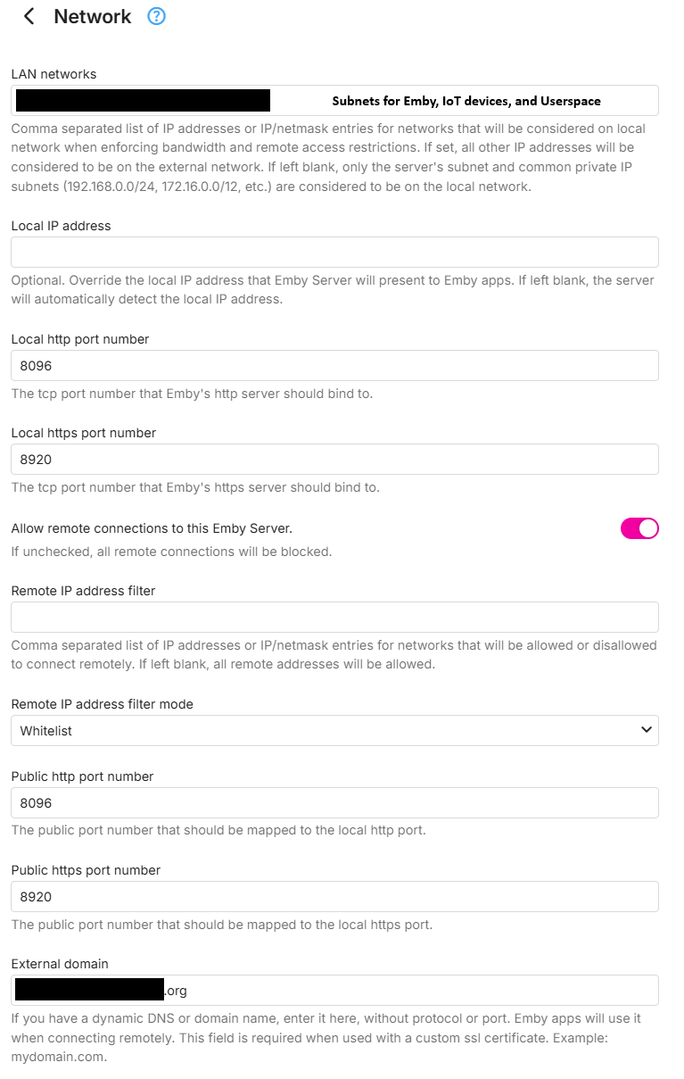 EarlyOnsetPooka 1 Posted June 14, 2025 Posted June 14, 2025 (edited) This is what I've got going on. WAN requests are handle by nginx on a separate machine that points to the emby server, and certificates are handled by that. My local clients access via domain name, which works. I'm going to attempt to sign in via IP address on the Google TV box in this room to see if that makes any difference (it didn't) embyserver (debug).txt Edited June 14, 2025 by EarlyOnsetPooka updated info