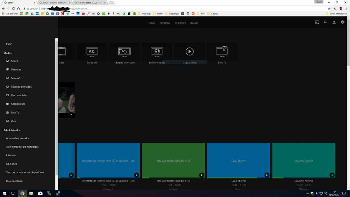 Guest plexman Posted June 13, 2017 Posted June 13, 2017 (edited) Happened to me the same as @@jbmangan in Chrome but solved clearing the cache. The only issue I encountered in 3.2.20.0 is the left menu showing a little bit moved down. Screenshot attached. EDIT: Is where it says "Inicio" "Medios". Just above that, there is a big dark grey space. Edited June 13, 2017 by plexman